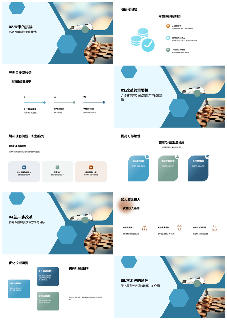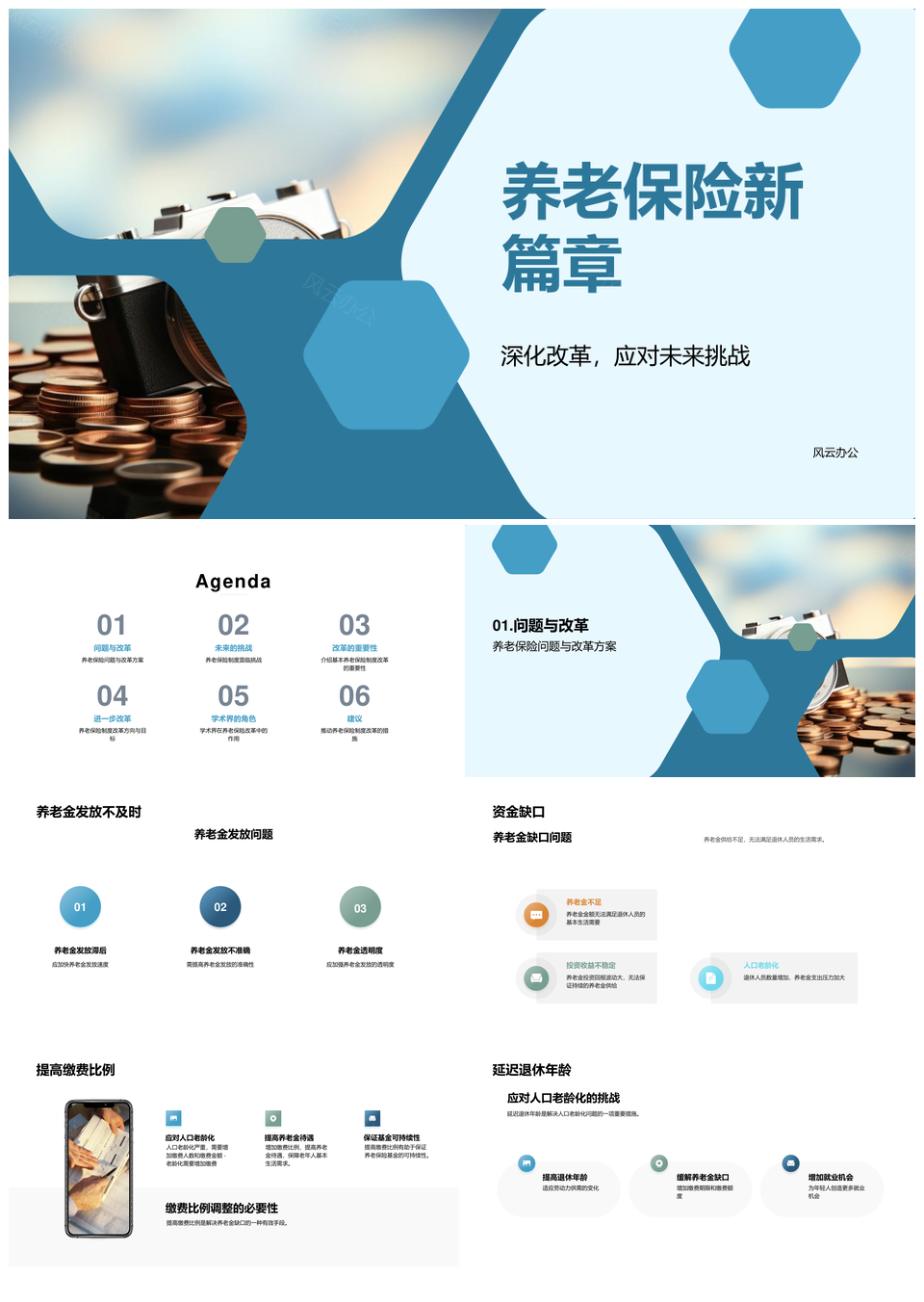 风云办公提供的养老保险改革应对资金缺口延迟退休PPT模板,下载格式为pptx,一共24页,作品中文字及图均可以修改和编辑,图片更改请在作品中右键图片并更换,文字修改请直接点击文字进行修改。