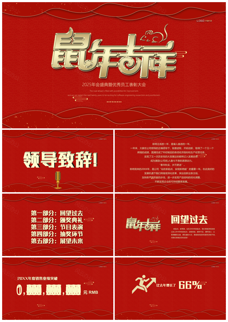 红色新年颁奖年会总结颁奖典礼PPT模板