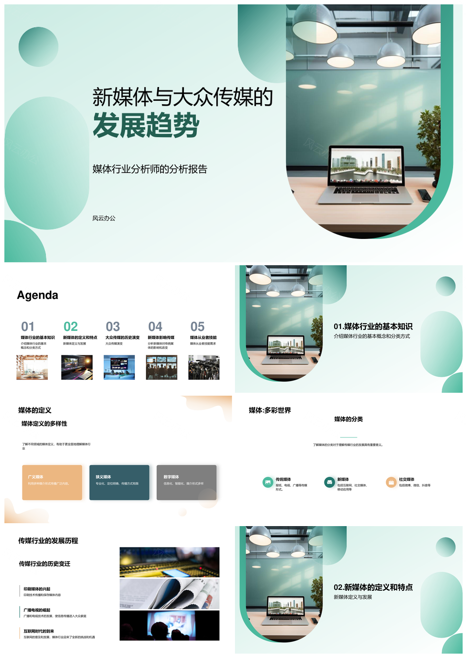 风云办公提供的新媒体大众传媒发展趋势及行业分析PPT模板,下载格式为pptx,一共23页,作品中文字及图均可以修改和编辑,图片更改请在作品中右键图片并更换,文字修改请直接点击文字进行修改。