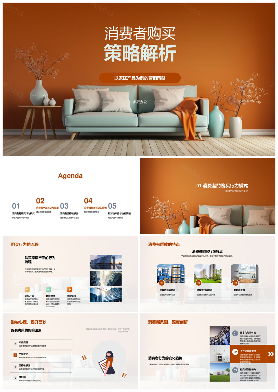 风云办公提供的家居消费者购买决策与营销策略解析PPT模板,下载格式为pptx,一共28页,作品中文字及图均可以修改和编辑,图片更改请在作品中右键图片并更换,文字修改请直接点击文字进行修改。