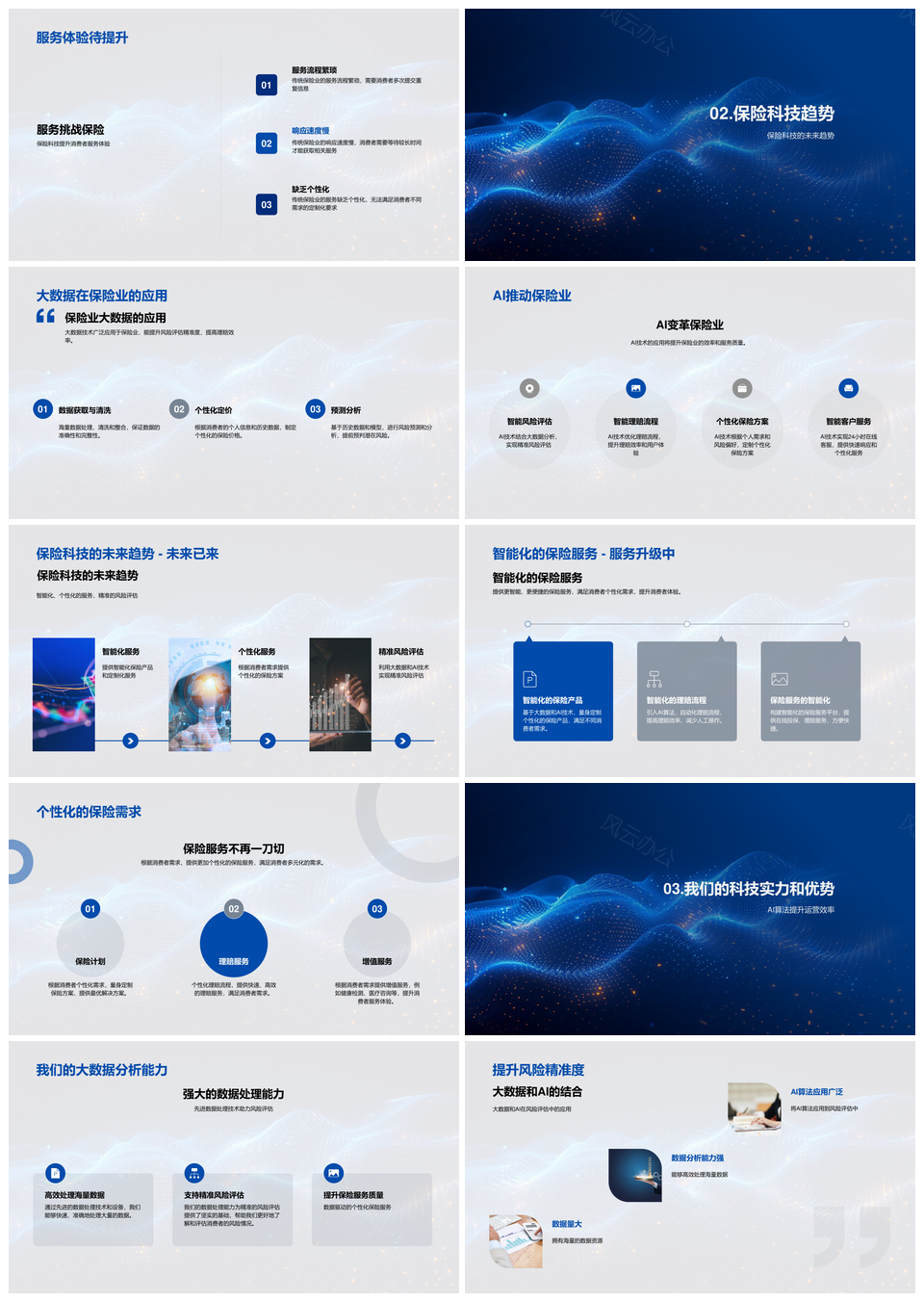 保险科技变革AI大数据智能风控提效个性化PPT模板推荐