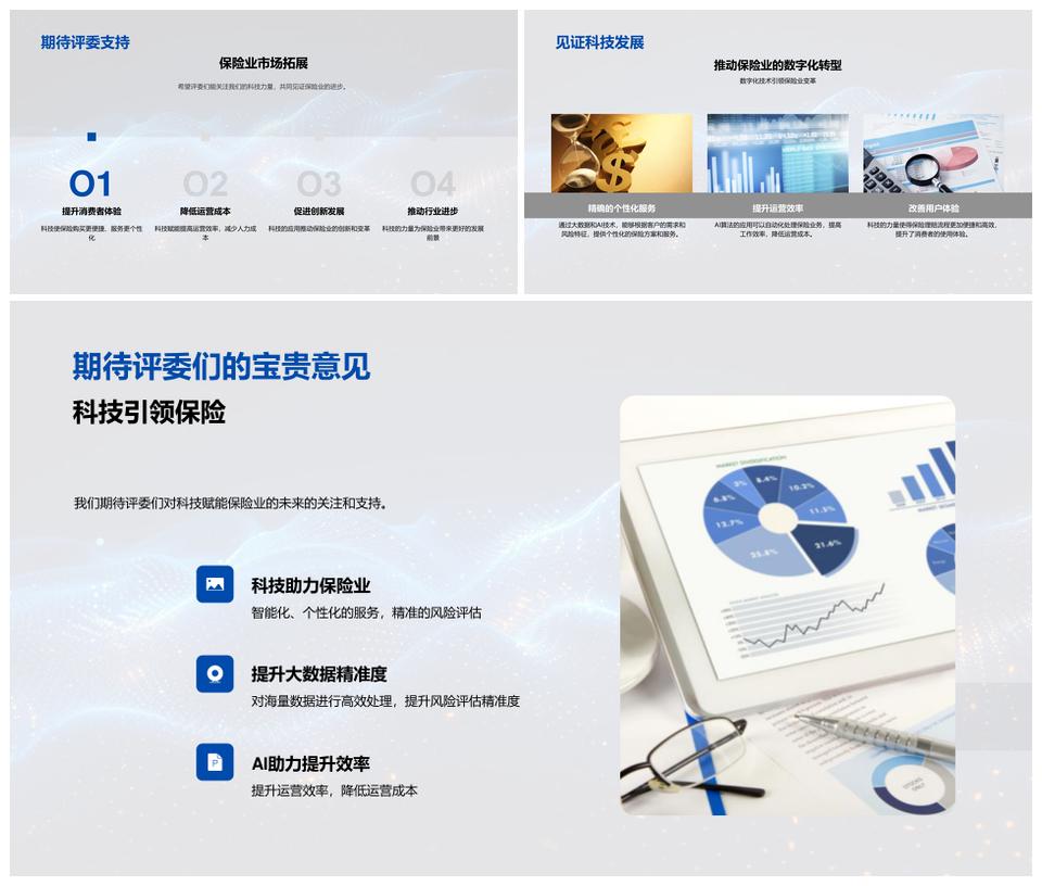 这是一张保险科技变革AI大数据智能风控提效个性化PPT模板,包含保险、科技、变革、AI、大数据、智能、风控、提效、个性化等主题内容,也可用作保险科技变革AI、科技变革AI大数据、变革AI大数据智能风控、AI大数据智能风控提效、大数据智能风控提效个性化、保险科技AI大数据、保险科技智能风控提效、科技AI大数据智能风控、保险科技变革、科技变革AI、变革AI大数据、AI大数据智能风控、大数据智能风控提效、智能风控提效个性化、保险科技智能风控等PPT场景使用。 风云办公提供的保险科技变革AI大数据智能风控提效个性化PPT模板,下载格式为pptx,一共31页,作品中文字及图均可以修改和编辑,图片更改请在作品中右键图片并更换,文字修改请直接点击文字进行修改。