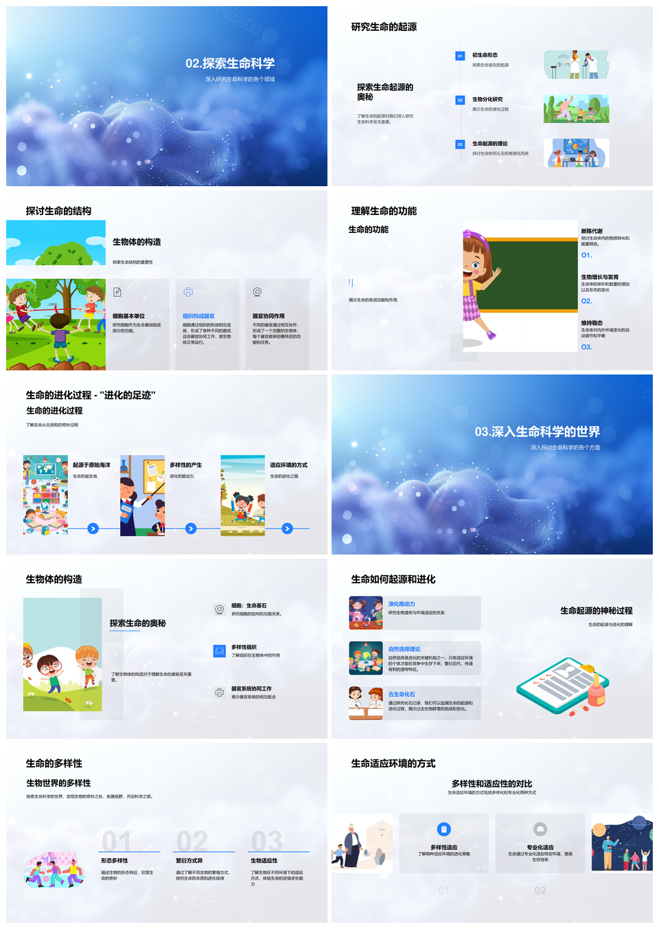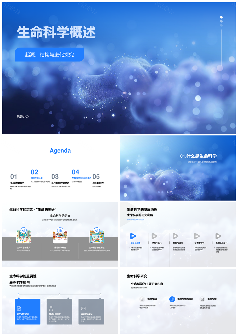 风云办公提供的生命科学起源构造进化多样适应解析PPT模板,下载格式为pptx,一共28页,作品中文字及图均可以修改和编辑,图片更改请在作品中右键图片并更换,文字修改请直接点击文字进行修改。