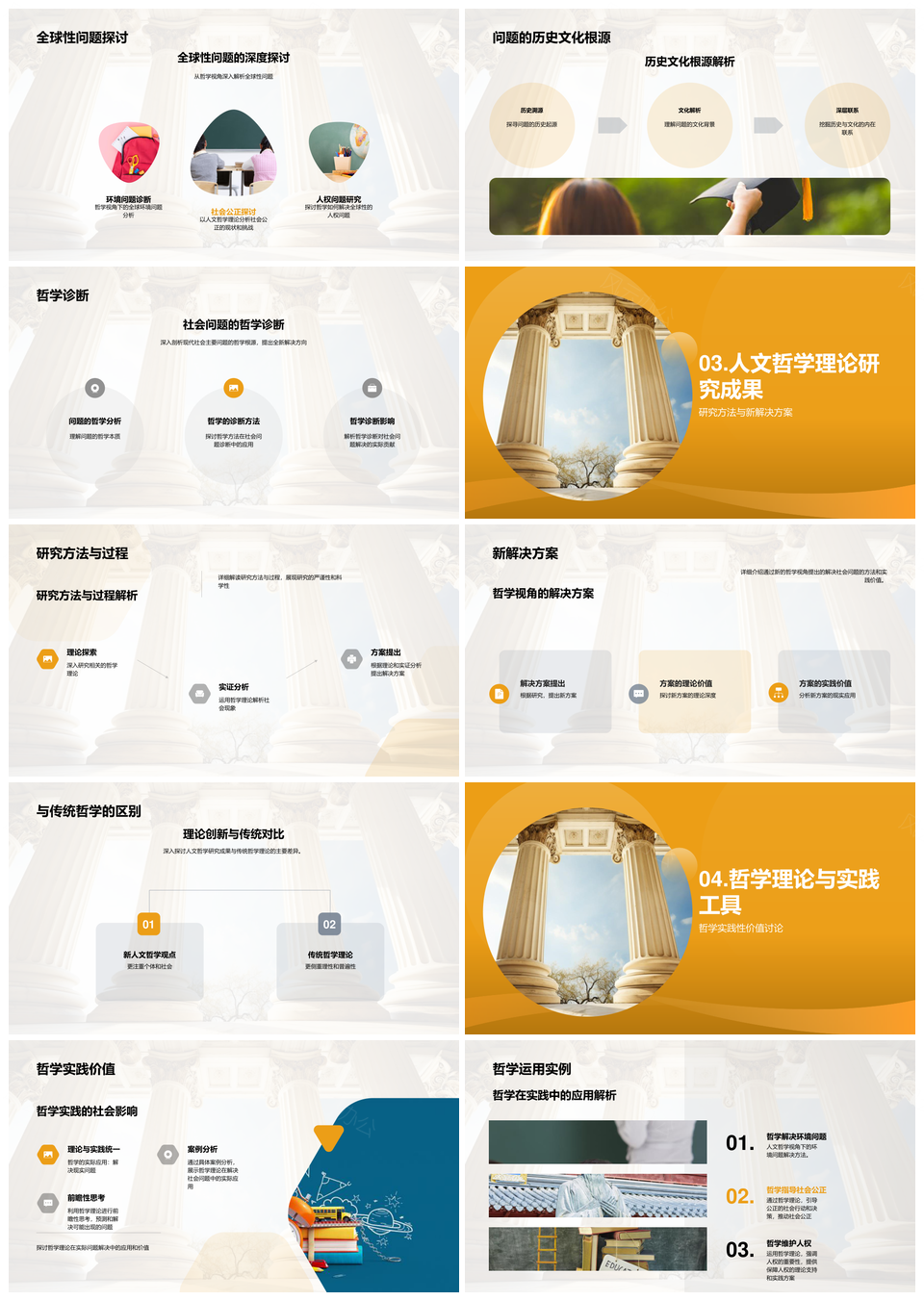 风云办公提供的哲学视界全球社会问题新解实践价值PPT模板,下载格式为pptx,一共23页,作品中文字及图均可以修改和编辑,图片更改请在作品中右键图片并更换,文字修改请直接点击文字进行修改。