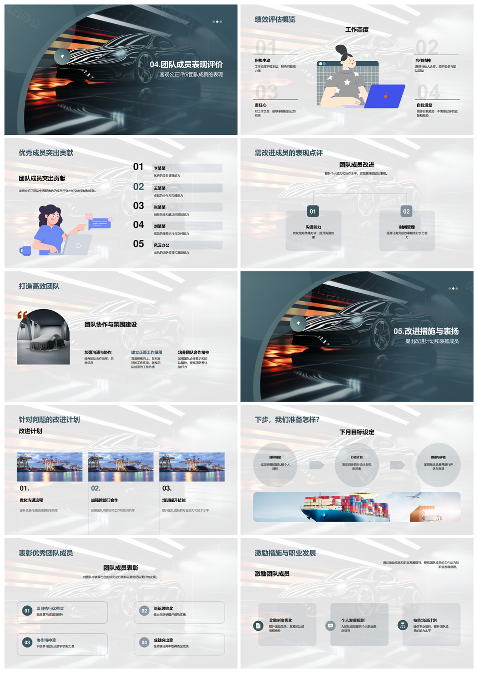 这是一张汽车项目月度团队运营复盘进展问题绩效改进PPT模板,包含汽车项目、月度、团队、运营、复盘、进展、问题、绩效、改进等主题内容,也可用作汽车项目月度团队运营复盘、月度团队运营复盘进展、运营复盘进展问题绩效、进展问题绩效改进、汽车项目团队运营复盘、月度运营复盘进展问题、复盘进展问题绩效、团队运营复盘进展、汽车项目月度团队、月度团队运营复盘、运营复盘进展问题、进展问题绩效、汽车项目团队、月度运营复盘、问题绩效改进等PPT场景使用。 风云办公提供的汽车项目月度团队运营复盘进展问题绩效改进PPT模板,下载格式为pptx,一共28页,作品中文字及图均可以修改和编辑,图片更改请在作品中右键图片并更换,文字修改请直接点击文字进行修改。