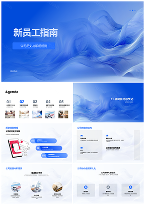 蓝色人力资源公司单位新员工入职培训手册PPT高端模板