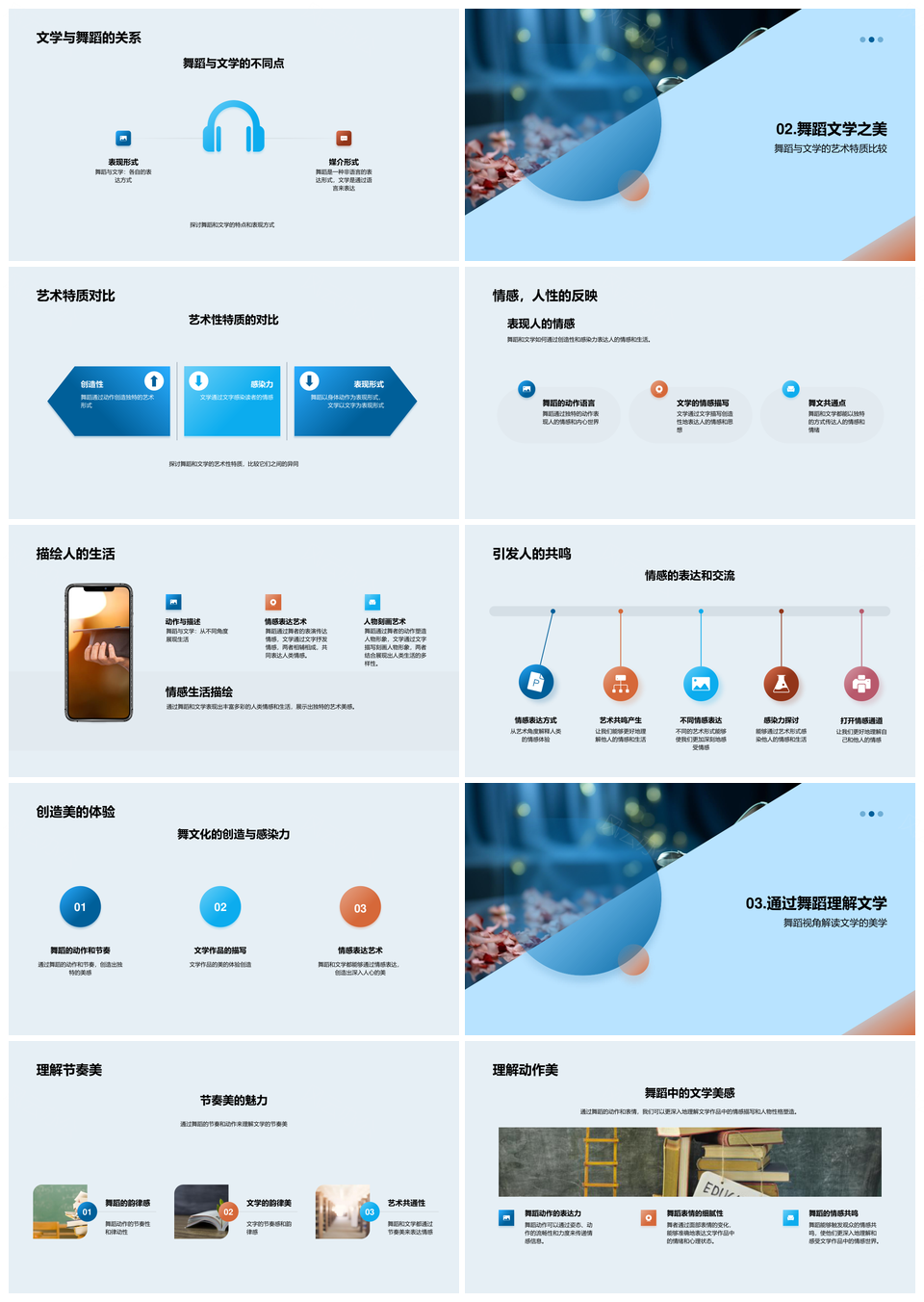 这是一张舞文融艺情动生活美PPT模板,包含舞文、融艺、情动、生活美等主题内容,也可用作舞文融艺情动生活、舞文融艺情动、舞文融艺生活、舞文情动生活、融艺情动生活、舞文融艺、舞文情动、舞文生活、融艺情动、融艺生活、情动生活、融艺舞文、情动融艺、生活融艺、生活情动等PPT场景使用。 风云办公提供的舞文融艺情动生活美PPT模板,下载格式为pptx,一共33页,作品中文字及图均可以修改和编辑,图片更改请在作品中右键图片并更换,文字修改请直接点击文字进行修改。