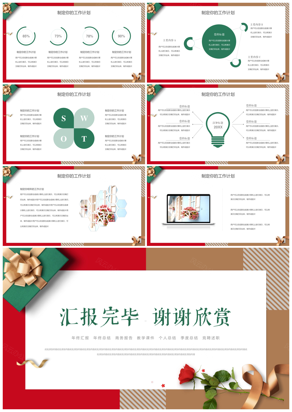 风云办公提供的彩色喜庆礼物风格高质量创意PPT模板,下载格式为pptx,一共17页,作品中文字及图均可以修改和编辑,图片更改请在作品中右键图片并更换,文字修改请直接点击文字进行修改。
