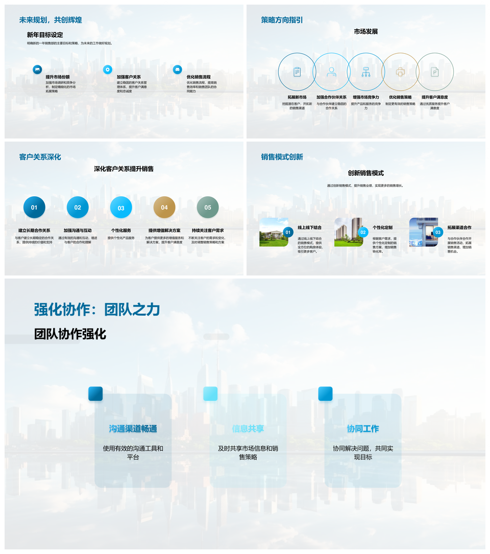 这是一张房地产销售团队迎挑战新机遇策略促年度目标达成PPT模板,包含房地产、销售团队、迎、挑战、新机遇、策略、促、年度目标、达成等主题内容,也可用作房地产销售团队迎挑战新机遇、销售团队迎挑战新机遇策略、迎挑战新机遇策略年度目标、新机遇策略年度目标达成、房地产销售团队迎挑战、销售团队迎挑战新机遇、迎挑战新机遇策略、新机遇策略年度目标、策略年度目标达成、房地产销售团队、销售团队迎挑战、迎挑战新机遇、新机遇策略、策略年度目标、年度目标达成等PPT场景使用。 风云办公提供的房地产销售团队迎挑战新机遇策略促年度目标达成PPT模板,下载格式为pptx,一共33页,作品中文字及图均可以修改和编辑,图片更改请在作品中右键图片并更换,文字修改请直接点击文字进行修改。