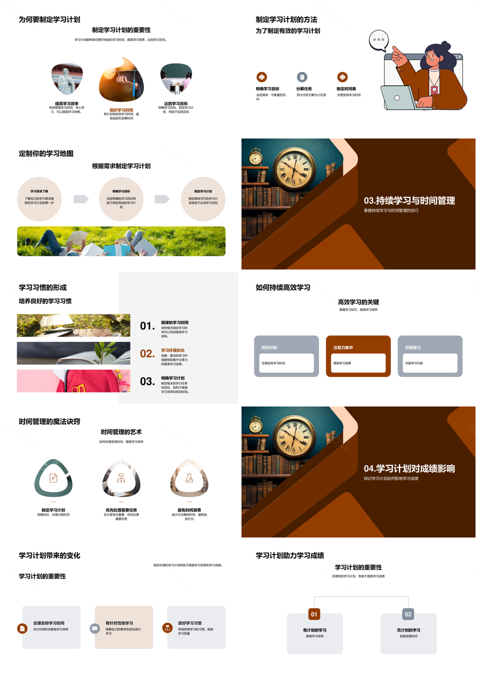 风云办公提供的新学期高效学习计划时间管理习惯PPT模板,下载格式为pptx,一共23页,作品中文字及图均可以修改和编辑,图片更改请在作品中右键图片并更换,文字修改请直接点击文字进行修改。