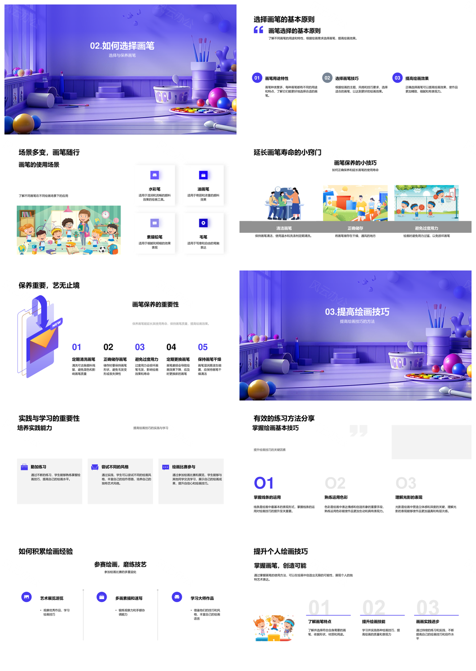 2025画笔种类应用技巧提升画效PPT模板