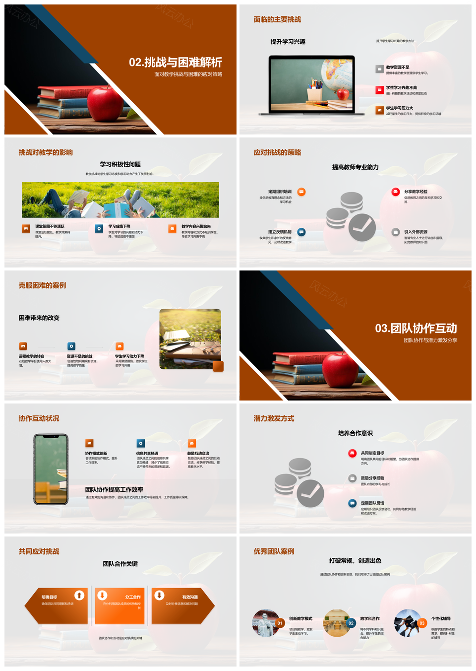 风云办公提供的教师协作创新克难共筑教学成果PPT模板,下载格式为pptx,一共28页,作品中文字及图均可以修改和编辑,图片更改请在作品中右键图片并更换,文字修改请直接点击文字进行修改。