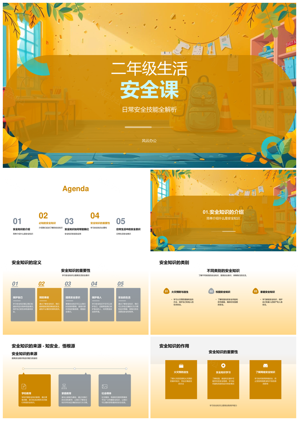 风云办公提供的二年级生活安全知识技能教育PPT模板,下载格式为pptx,一共30页,作品中文字及图均可以修改和编辑,图片更改请在作品中右键图片并更换,文字修改请直接点击文字进行修改。