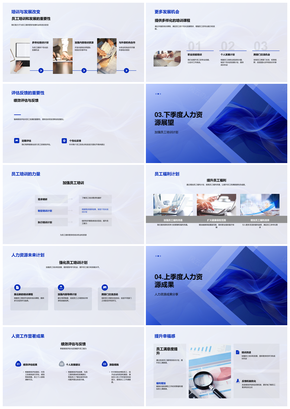 季度人力策略业务发展员工绩效培训福利汇报PPT模板推荐