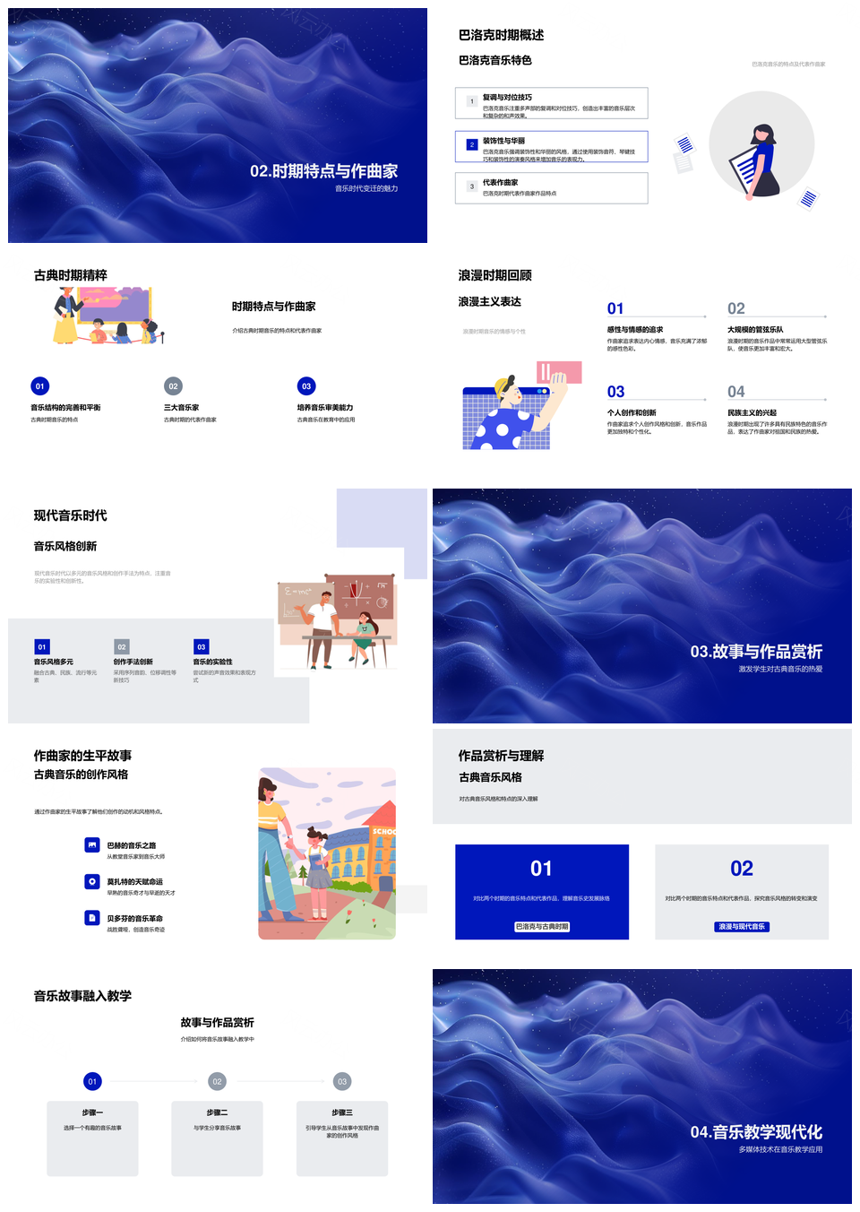 古典音乐教学作曲家历史演变与多媒体技术PPT模板推荐