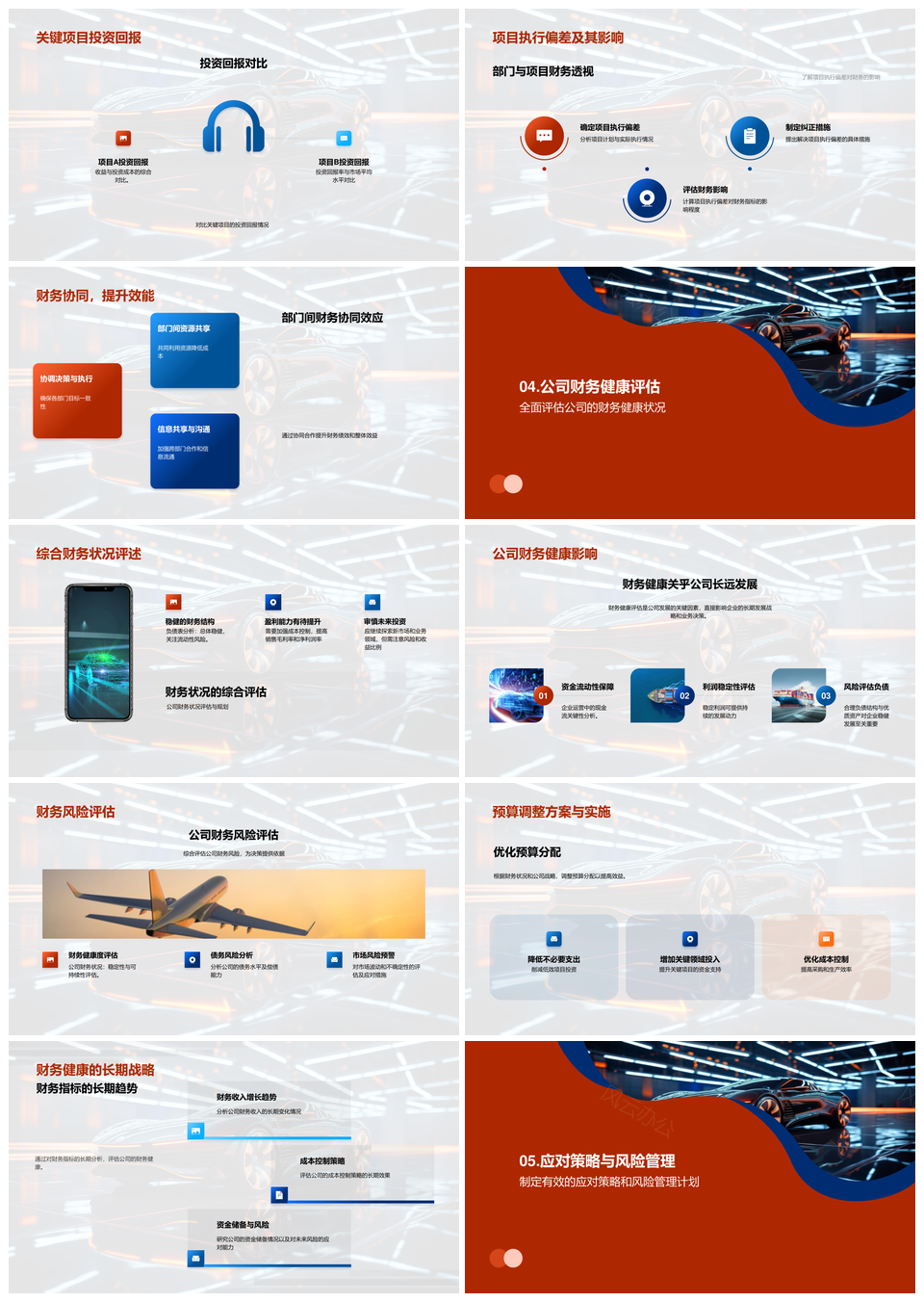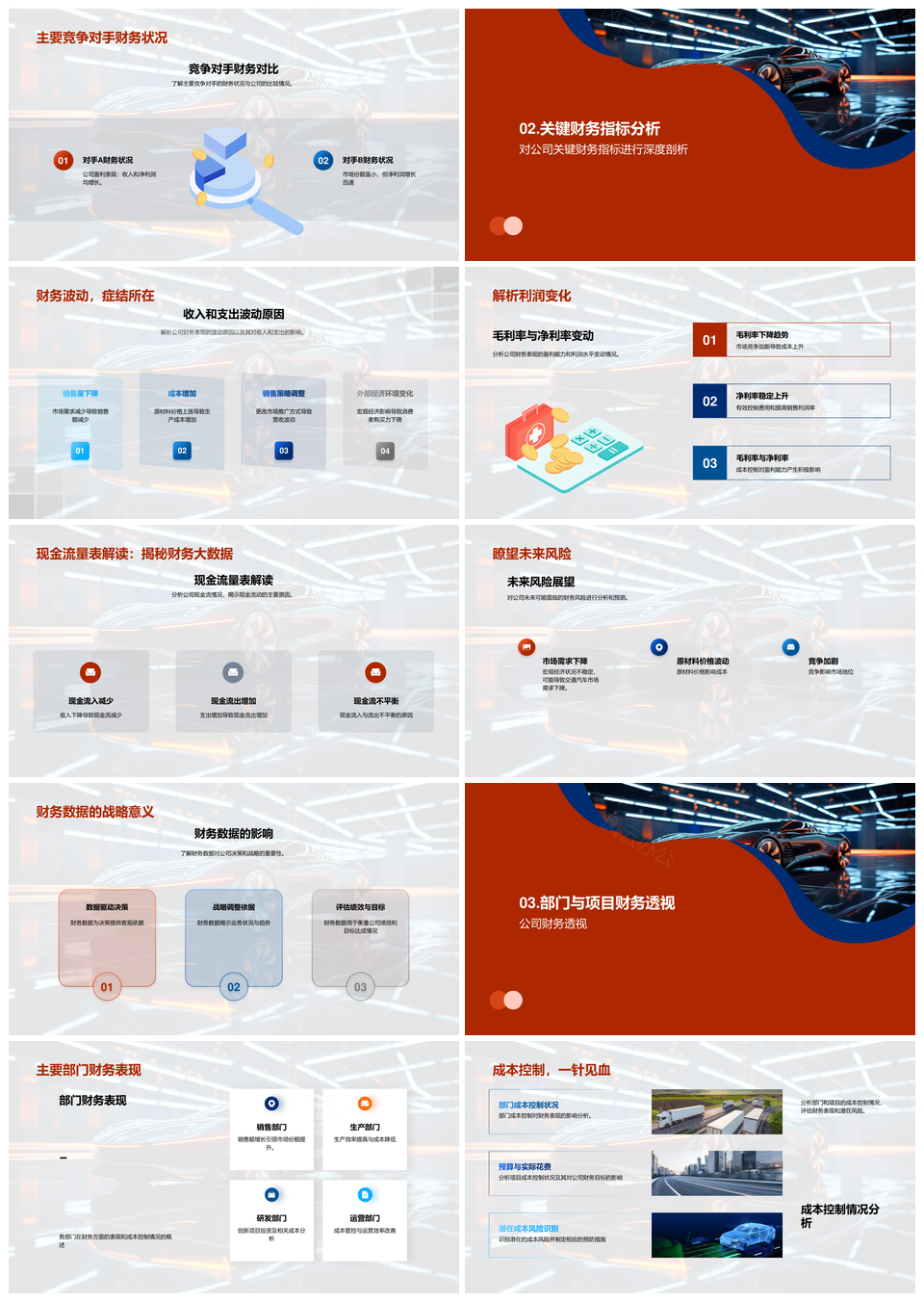 交通汽车趋势财务目标竞争现金流部门项目健康季报PPT模板推荐