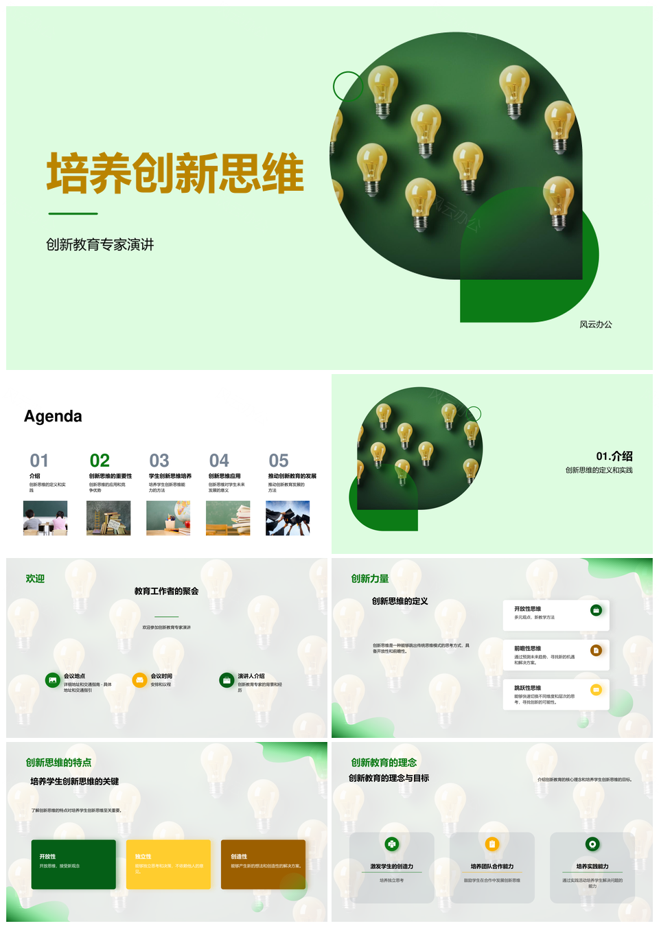 风云办公提供的教育工作者创新思维培养专家演讲解析PPT模板,下载格式为pptx,一共27页,作品中文字及图均可以修改和编辑,图片更改请在作品中右键图片并更换,文字修改请直接点击文字进行修改。
