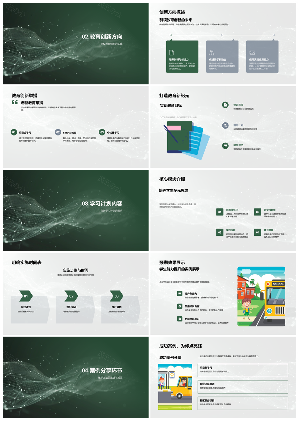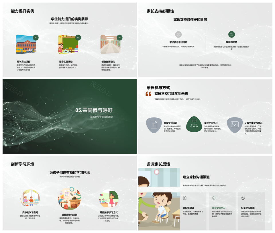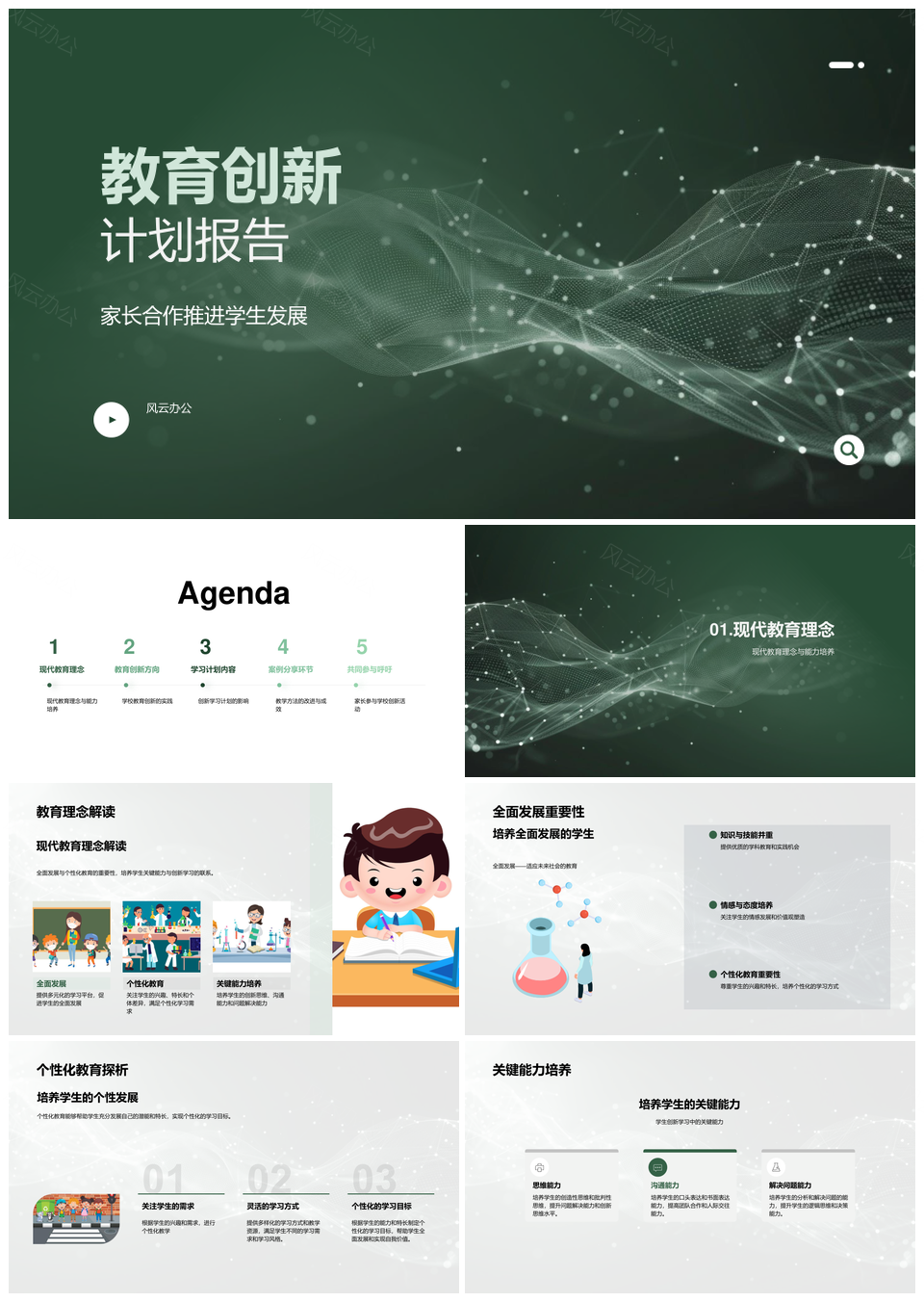 风云办公提供的教育创新家校共育学生全面发展计划PPT模板,下载格式为pptx,一共24页,作品中文字及图均可以修改和编辑,图片更改请在作品中右键图片并更换,文字修改请直接点击文字进行修改。