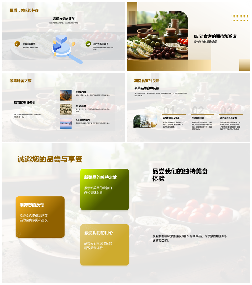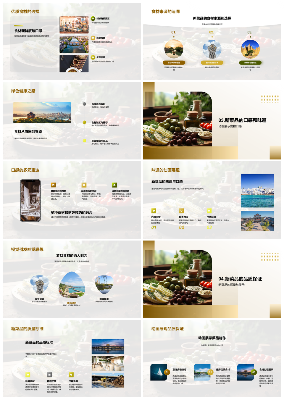 风云办公提供的新菜品食材动画呈现烹饪技艺品质美味PPT模板,下载格式为pptx,一共23页,作品中文字及图均可以修改和编辑,图片更改请在作品中右键图片并更换,文字修改请直接点击文字进行修改。