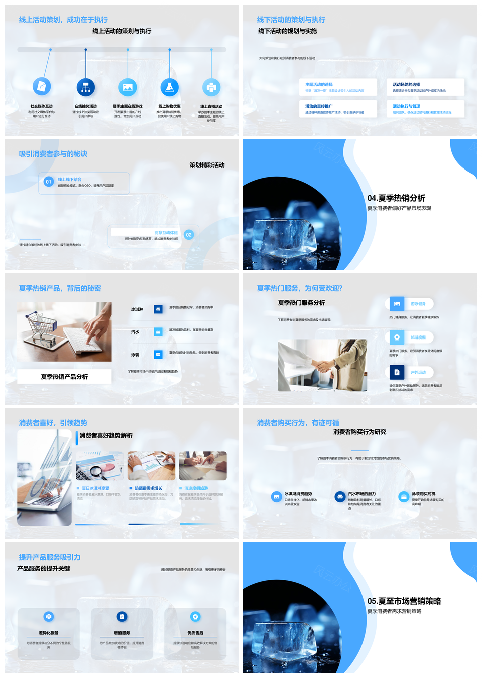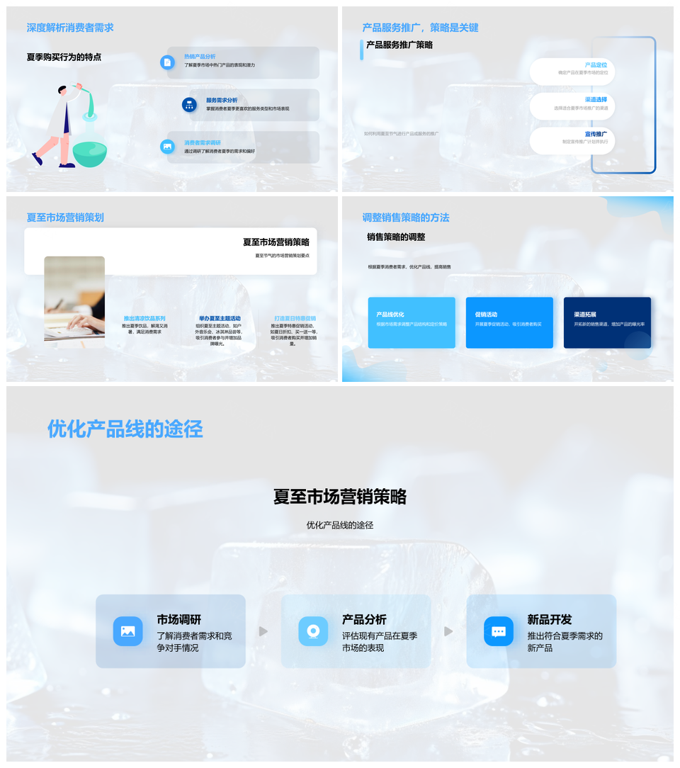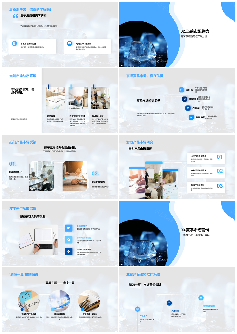 夏至营销趋势消费节气清凉产品活动策划冰点PPT模板推荐