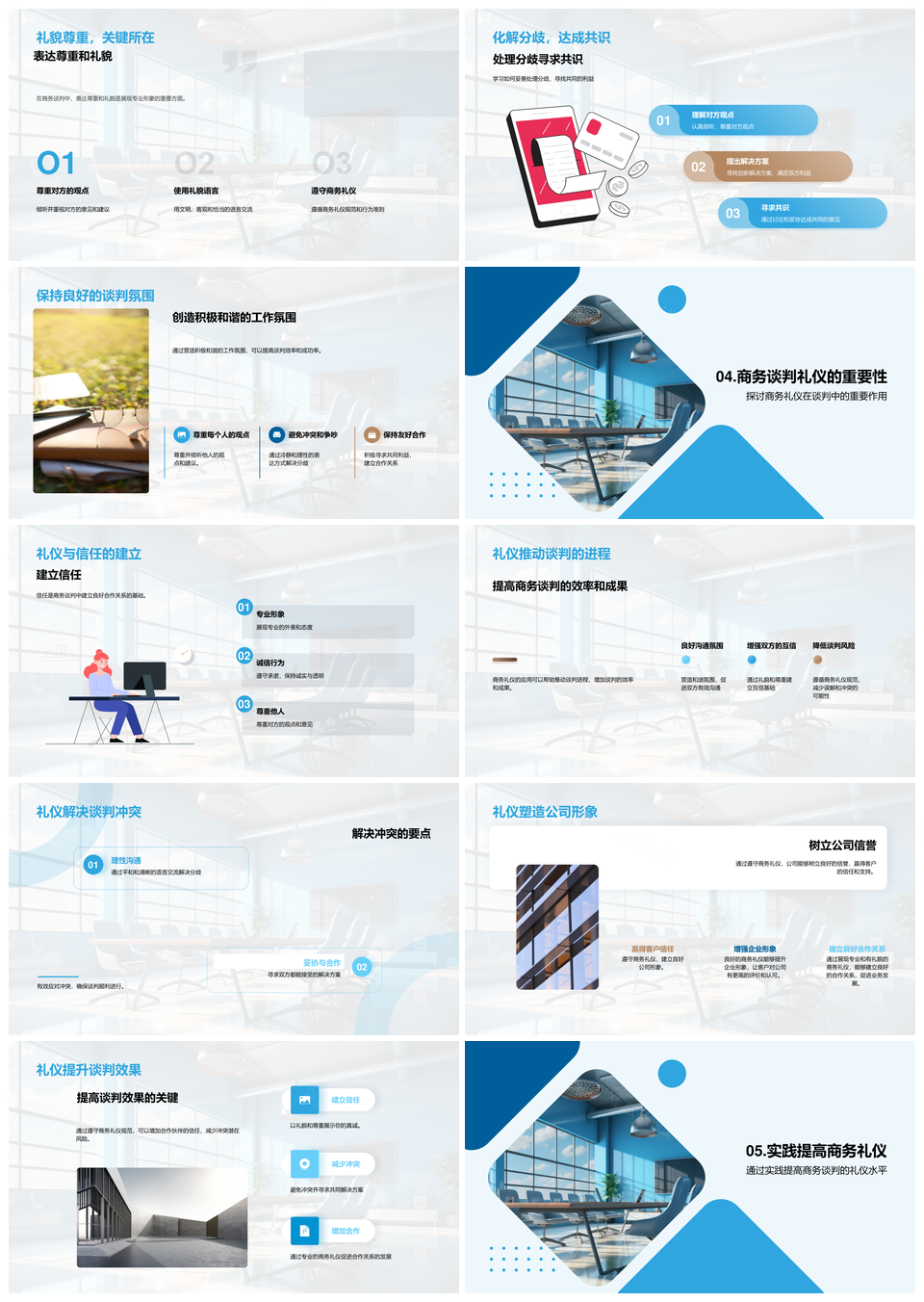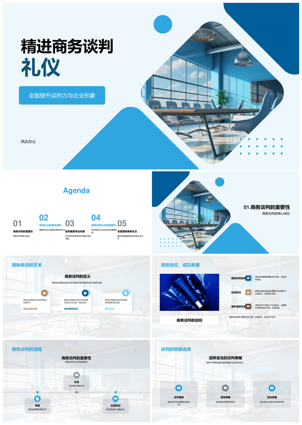 风云办公提供的商务谈判礼仪精进企业形象与合作关系PPT模板,下载格式为pptx,一共33页,作品中文字及图均可以修改和编辑,图片更改请在作品中右键图片并更换,文字修改请直接点击文字进行修改。