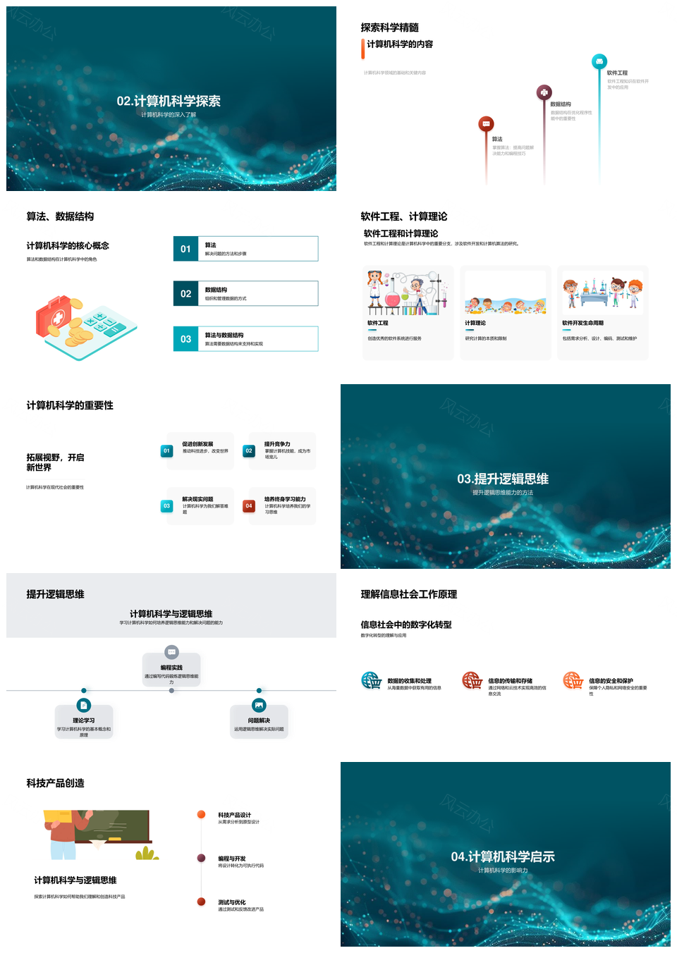 风云办公提供的高中计算机科学算法与逻辑思维发展PPT模板,下载格式为pptx,一共25页,作品中文字及图均可以修改和编辑,图片更改请在作品中右键图片并更换,文字修改请直接点击文字进行修改。
