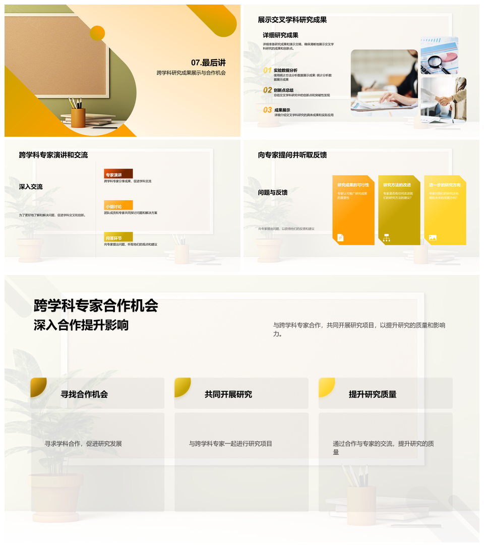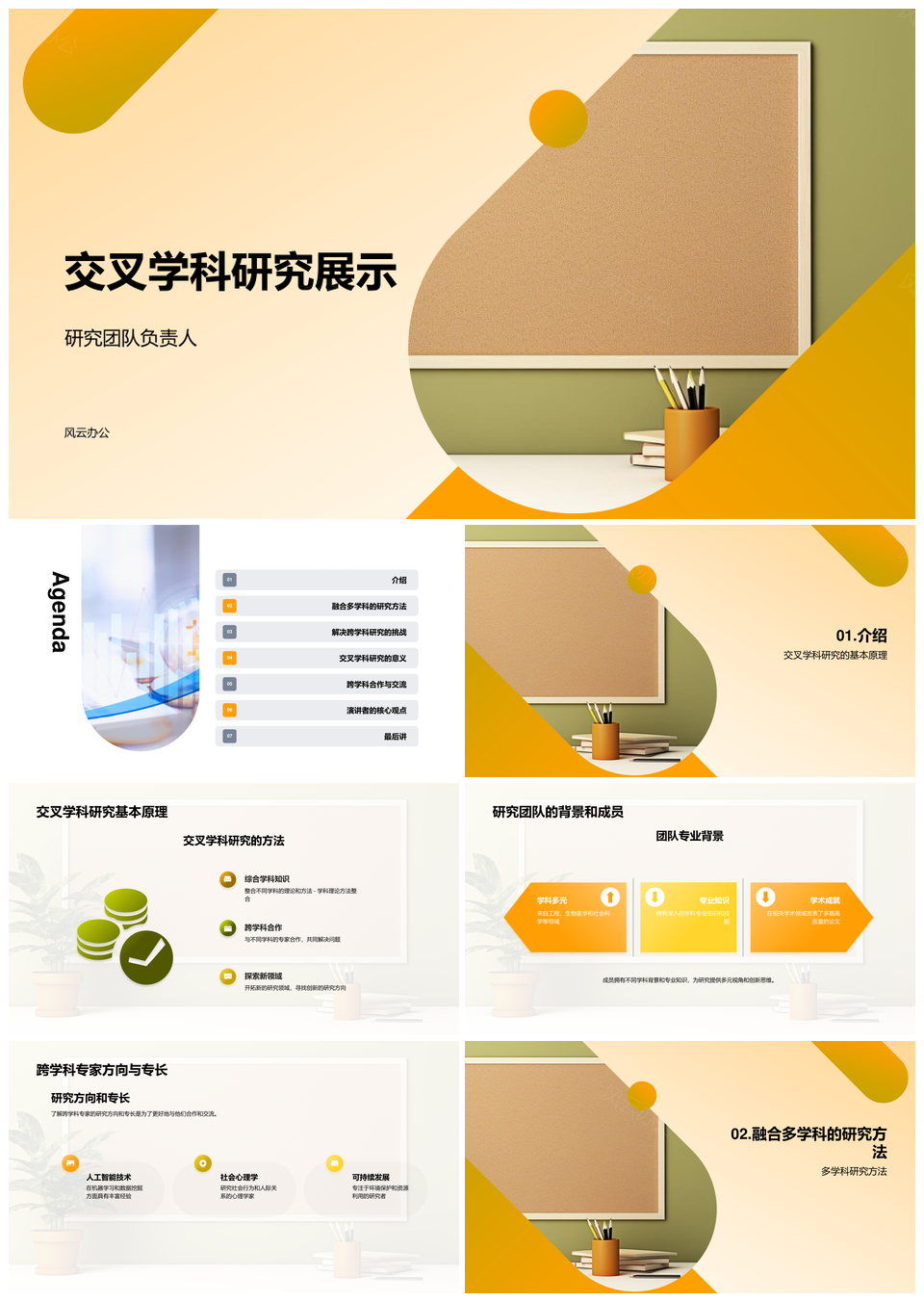 风云办公提供的跨学科团队学术答辩研究合作PPT模板,下载格式为pptx,一共33页,作品中文字及图均可以修改和编辑,图片更改请在作品中右键图片并更换,文字修改请直接点击文字进行修改。