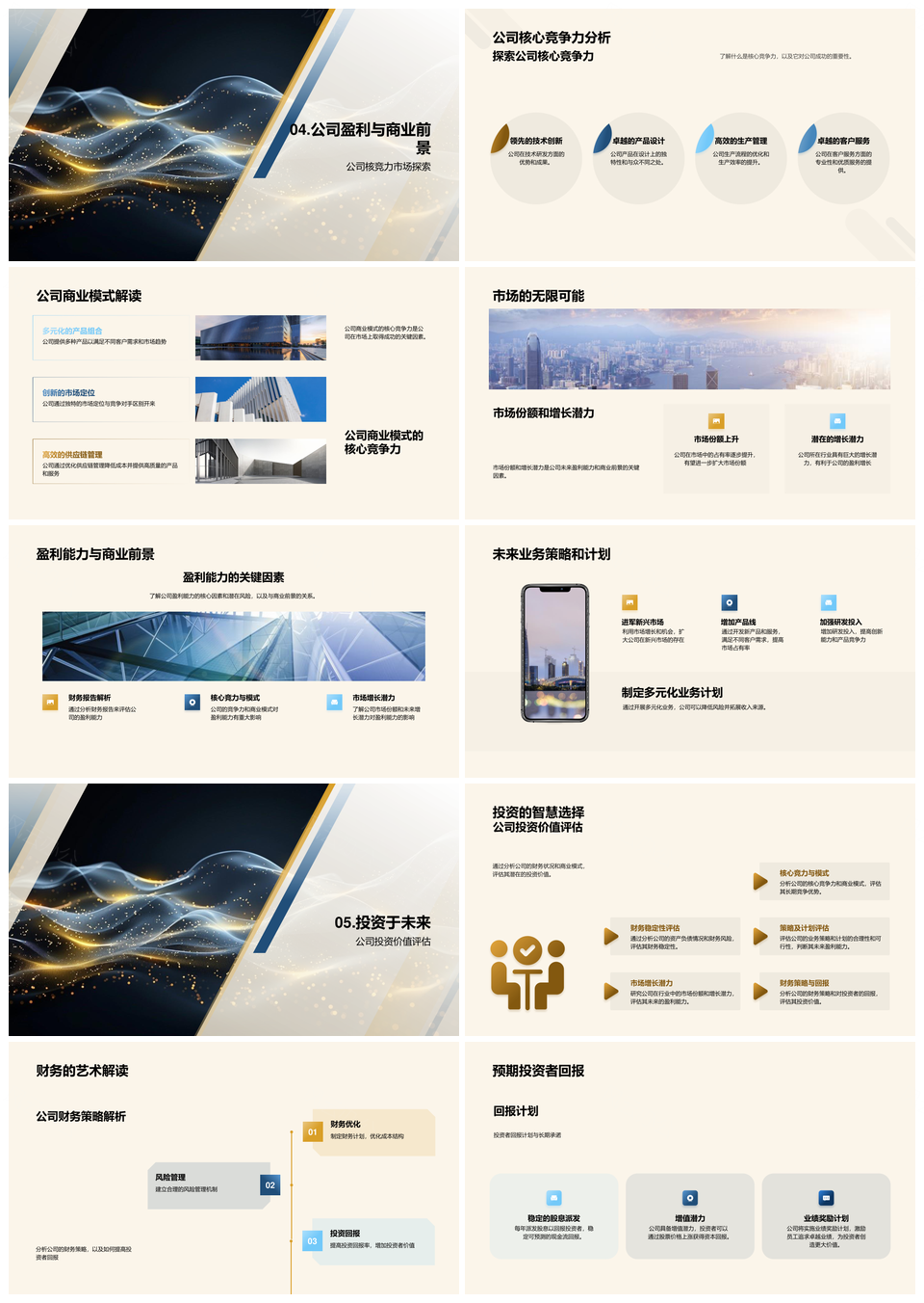 这是一张全球行业财务趋势盈利策略公司投资价值展望PPT模板,包含全球、行业、财务、趋势、盈利、策略、公司、投资、价值、展望等主题内容,也可用作全球行业财务趋势盈利策略、行业财务趋势盈利策略公司、财务趋势盈利策略公司投资、趋势盈利策略公司投资价值、盈利策略公司投资价值展望、全球行业财务趋势盈利、行业财务趋势盈利策略、财务趋势盈利策略公司、趋势盈利策略公司投资、盈利策略公司投资价值、公司投资价值展望、全球行业财务趋势、行业趋势盈利策略、财务盈利策略公司、投资价值展望等PPT场景使用。 风云办公提供的全球行业财务趋势盈利策略公司投资价值展望PPT模板,下载格式为pptx,一共30页,作品中文字及图均可以修改和编辑,图片更改请在作品中右键图片并更换,文字修改请直接点击文字进行修改。