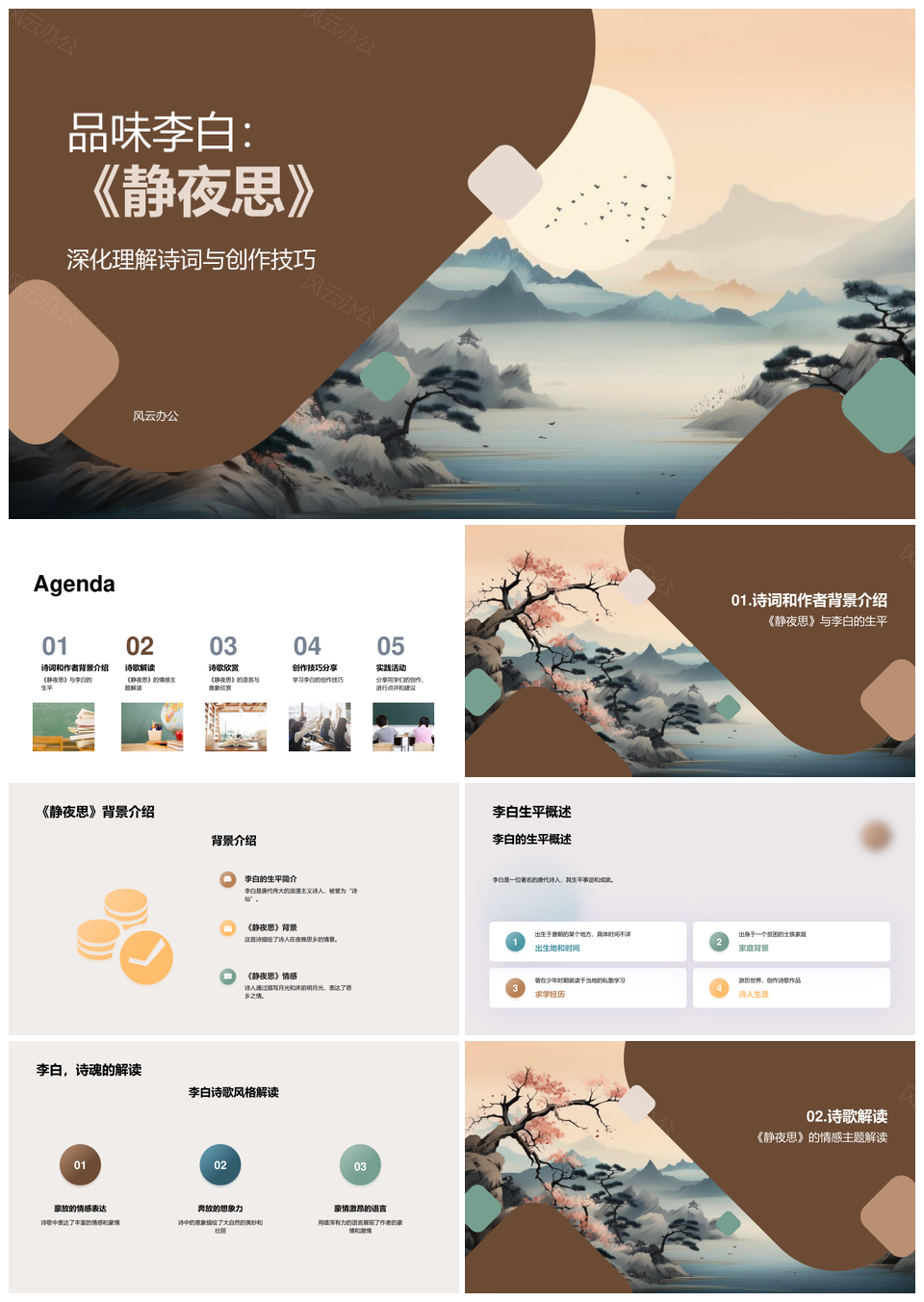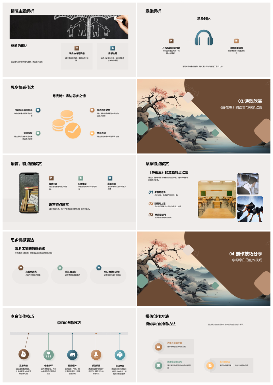 李白静夜思五言意象艺术深层析PPT模板