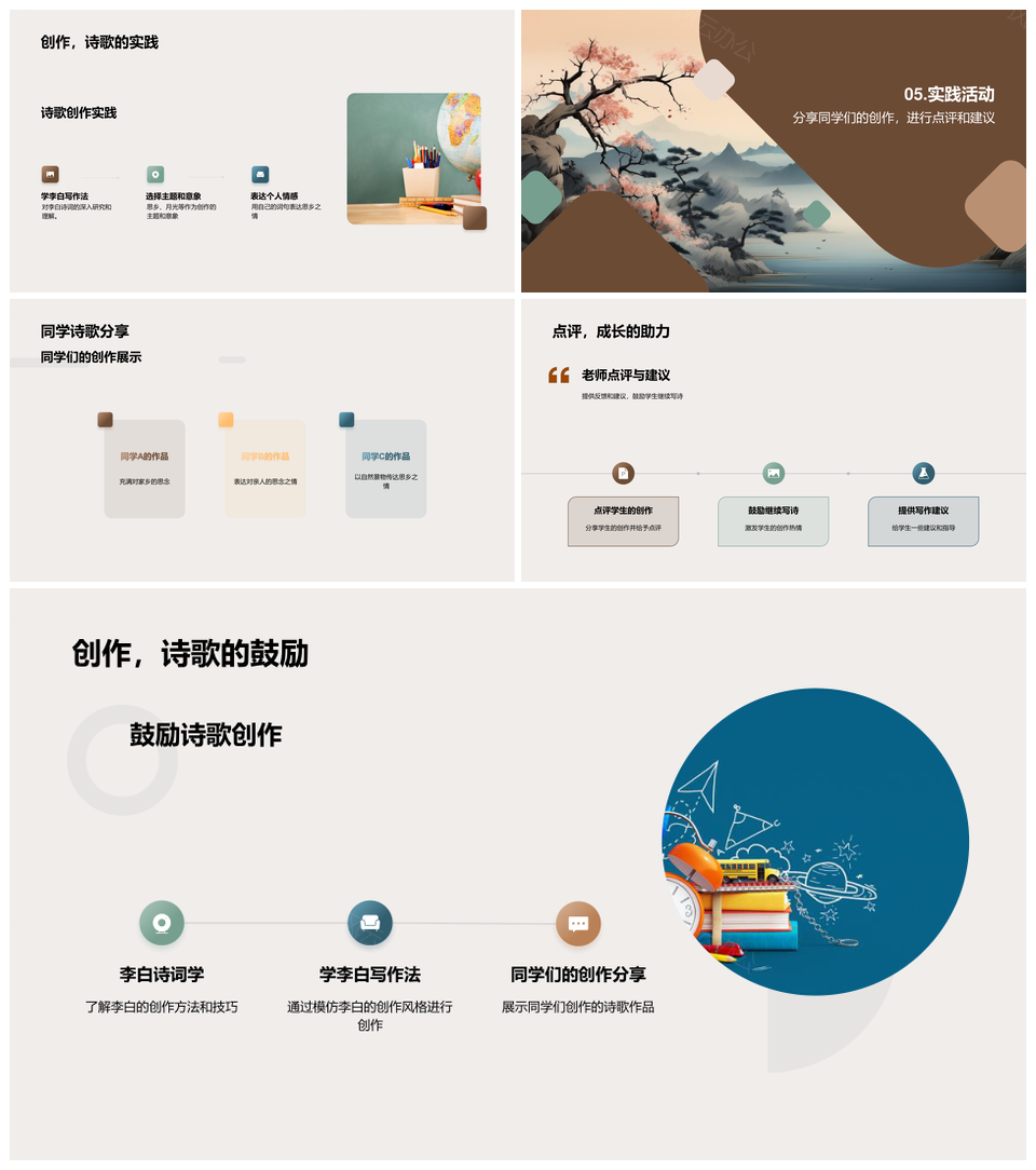 本模板以古典水墨意境为基底,融入山水画卷的层次感,通过棕、绿、浅蓝与深蓝色系搭配,营造沉稳雅致的学术氛围。首页采用月景山水剪影设计,章节页以渐变墨色分隔逻辑框架,辅助线稿图标强化专业气质。内容页聚焦物理问题解析,通过分步流程图解展示解题步骤,配合公式推导模块及对比分析表格,实现复杂原理的可视化拆解。关键数据通过留白与深色块突显,案例采用网格化布局确保信息密度。兼顾传统美学与现代学术表达,适用于公式推演、实验分析及方法论教学场景。