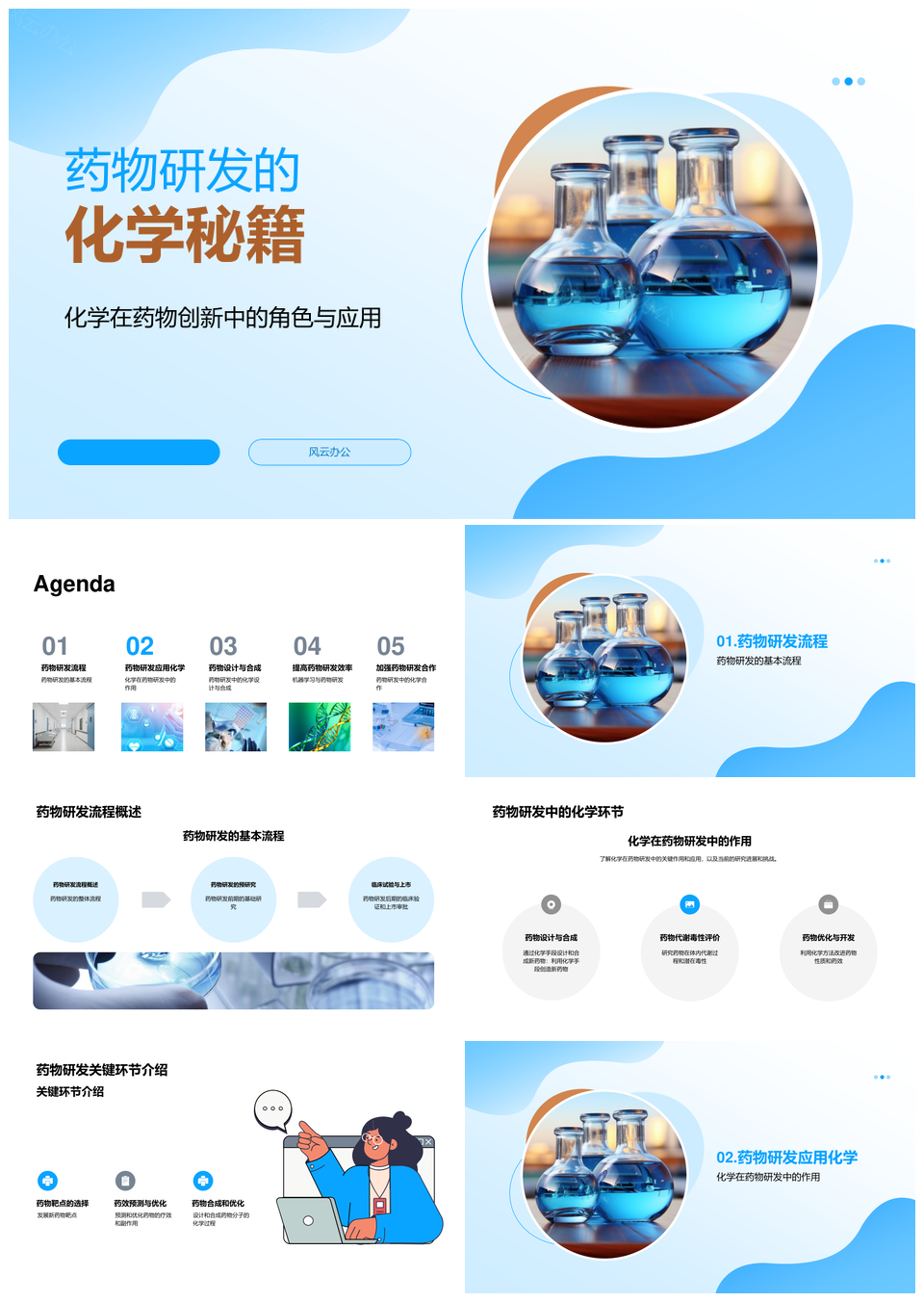 风云办公提供的化学专家解析药物研发全流程环节PPT模板,下载格式为pptx,一共23页,作品中文字及图均可以修改和编辑,图片更改请在作品中右键图片并更换,文字修改请直接点击文字进行修改。
