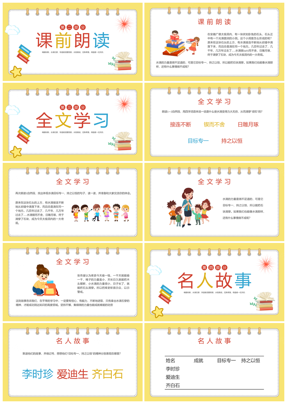 这是一张黄色多彩卡通成语水滴石穿班会课件,包含黄色、多彩、卡通、成语、水滴石穿、班会、课件等主题内容,也可用作黄色多彩卡通成语水滴石穿班会课件、多彩卡通成语水滴石穿班会、卡通成语水滴石穿班会课件、黄色多彩卡通成语水滴石穿、多彩卡通水滴石穿班会课件、黄色多彩卡通成语班会、卡通成语水滴石穿班会、黄色多彩卡通水滴石穿、多彩卡通成语班会课件、成语水滴石穿班会课件、黄色多彩卡通班会、多彩卡通水滴石穿、卡通成语水滴石穿、水滴石穿班会课件、成语水滴石穿班会等PPT场景使用。