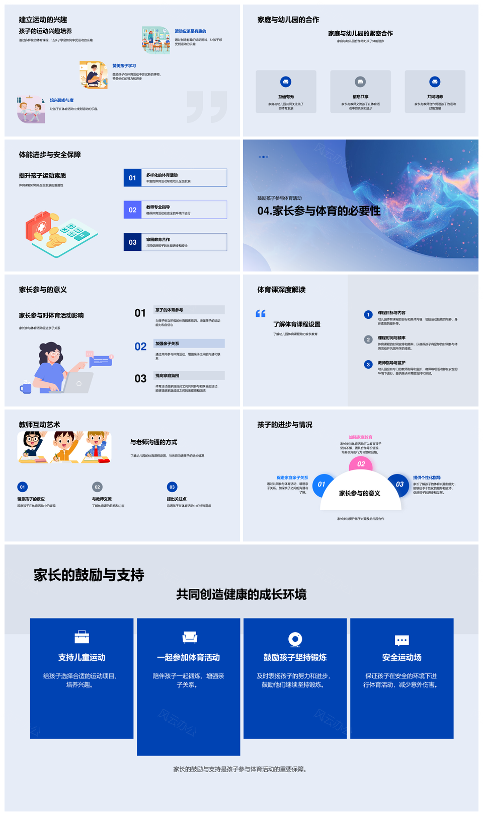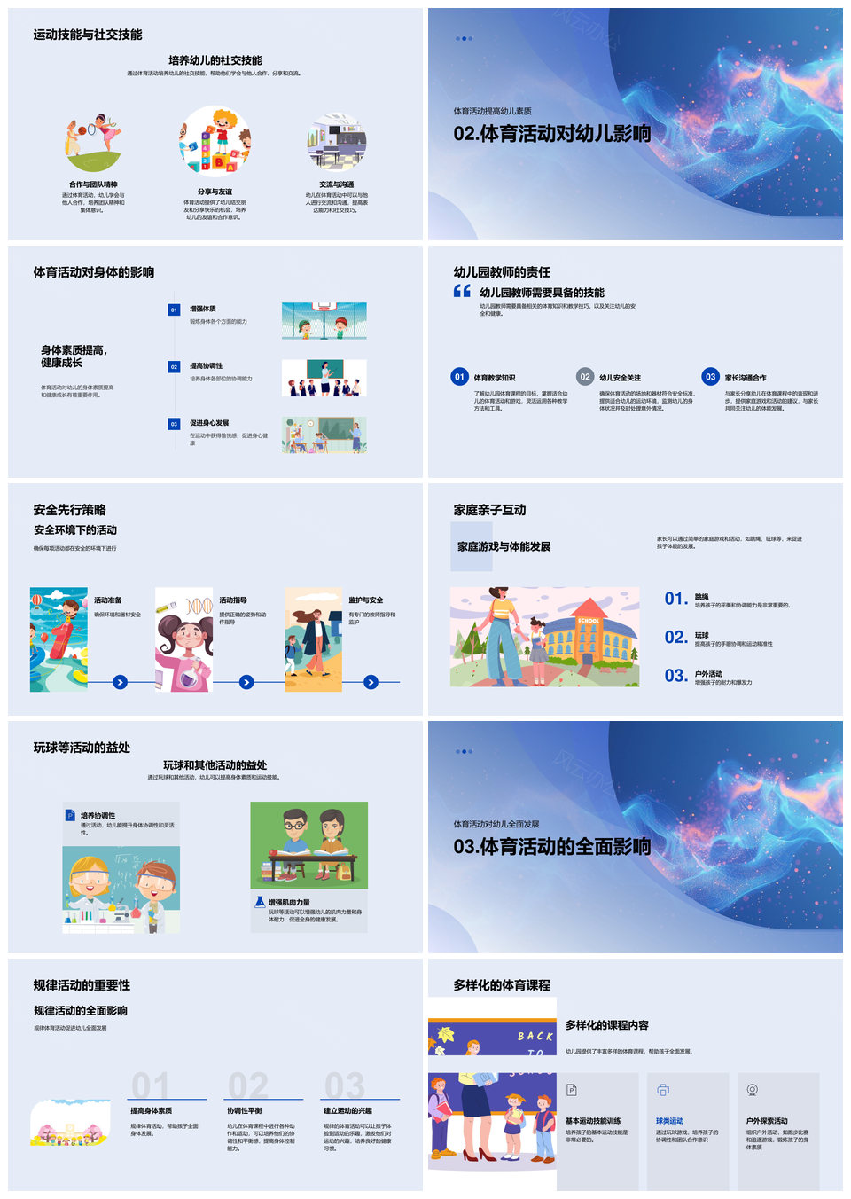 这是一张幼儿园体育课促进全面发展运动协调社交体能PPT模板,包含幼儿园、体育课、促进、全面发展、运动、协调、社交、体能等主题内容,也可用作幼儿园体育课促进全面发展、幼儿园体育课促进运动协调、体育课促进运动协调、促进全面发展运动协调、全面发展运动协调社交、运动协调社交体能、幼儿园促进全面发展运动、体育课促进协调社交体能、全面发展运动协调体能、体育课促进社交体能、幼儿园体育课运动、促进运动协调社交、运动协调社交、体育课促进体能、幼儿园体育课社交等PPT场景使用。 风云办公提供的幼儿园体育课促进全面发展运动协调社交体能PPT模板,下载格式为pptx,一共27页,作品中文字及图均可以修改和编辑,图片更改请在作品中右键图片并更换,文字修改请直接点击文字进行修改。