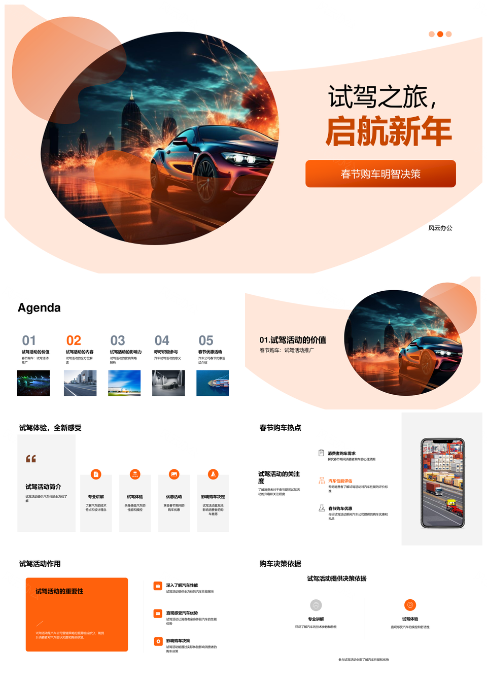 风云办公提供的新春试驾性能优优惠促购车决策PPT模板,下载格式为pptx,一共33页,作品中文字及图均可以修改和编辑,图片更改请在作品中右键图片并更换,文字修改请直接点击文字进行修改。