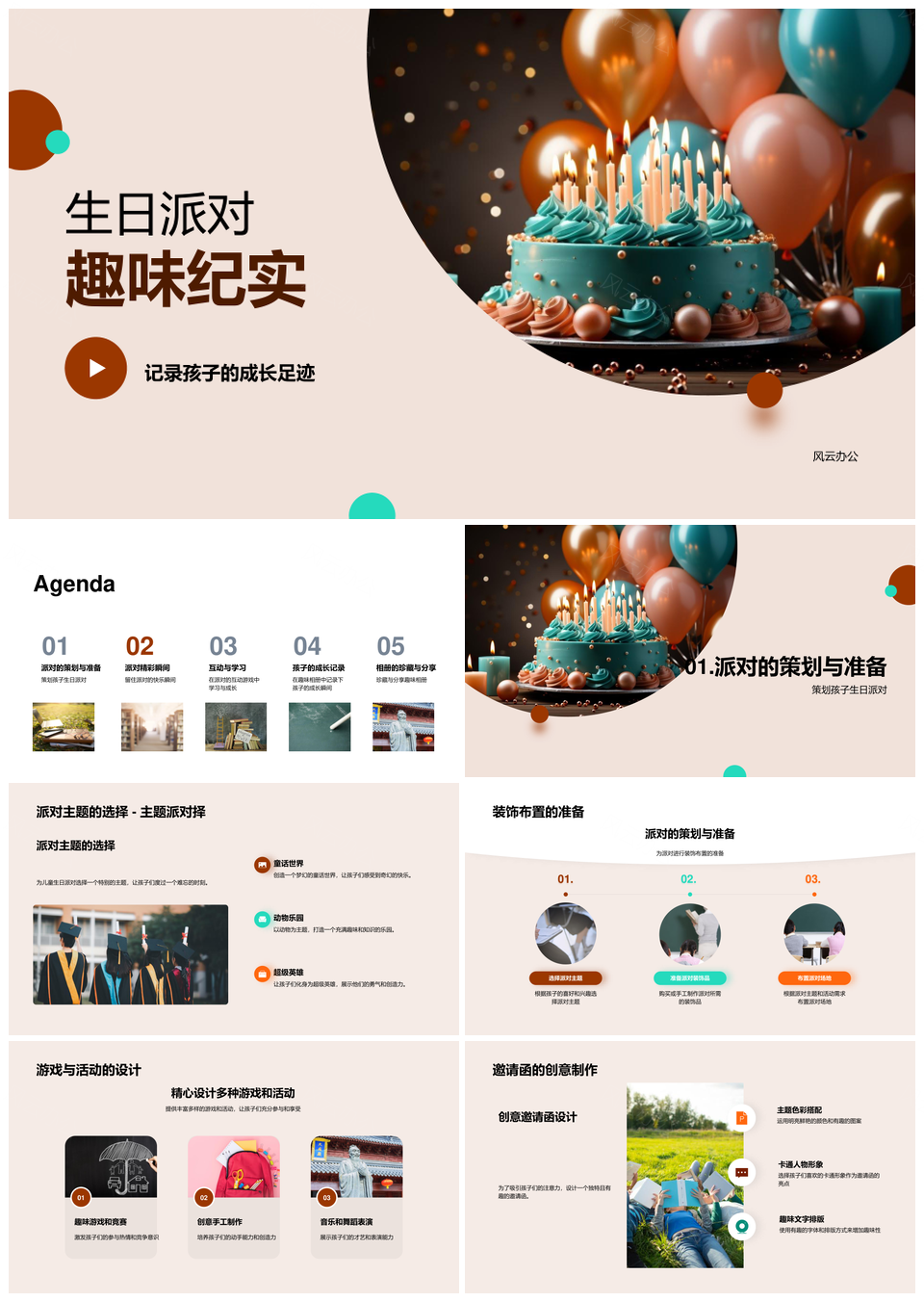 风云办公提供的童趣成长创意邀请函益智游戏生日蛋糕PPT模板,下载格式为pptx,一共33页,作品中文字及图均可以修改和编辑,图片更改请在作品中右键图片并更换,文字修改请直接点击文字进行修改。