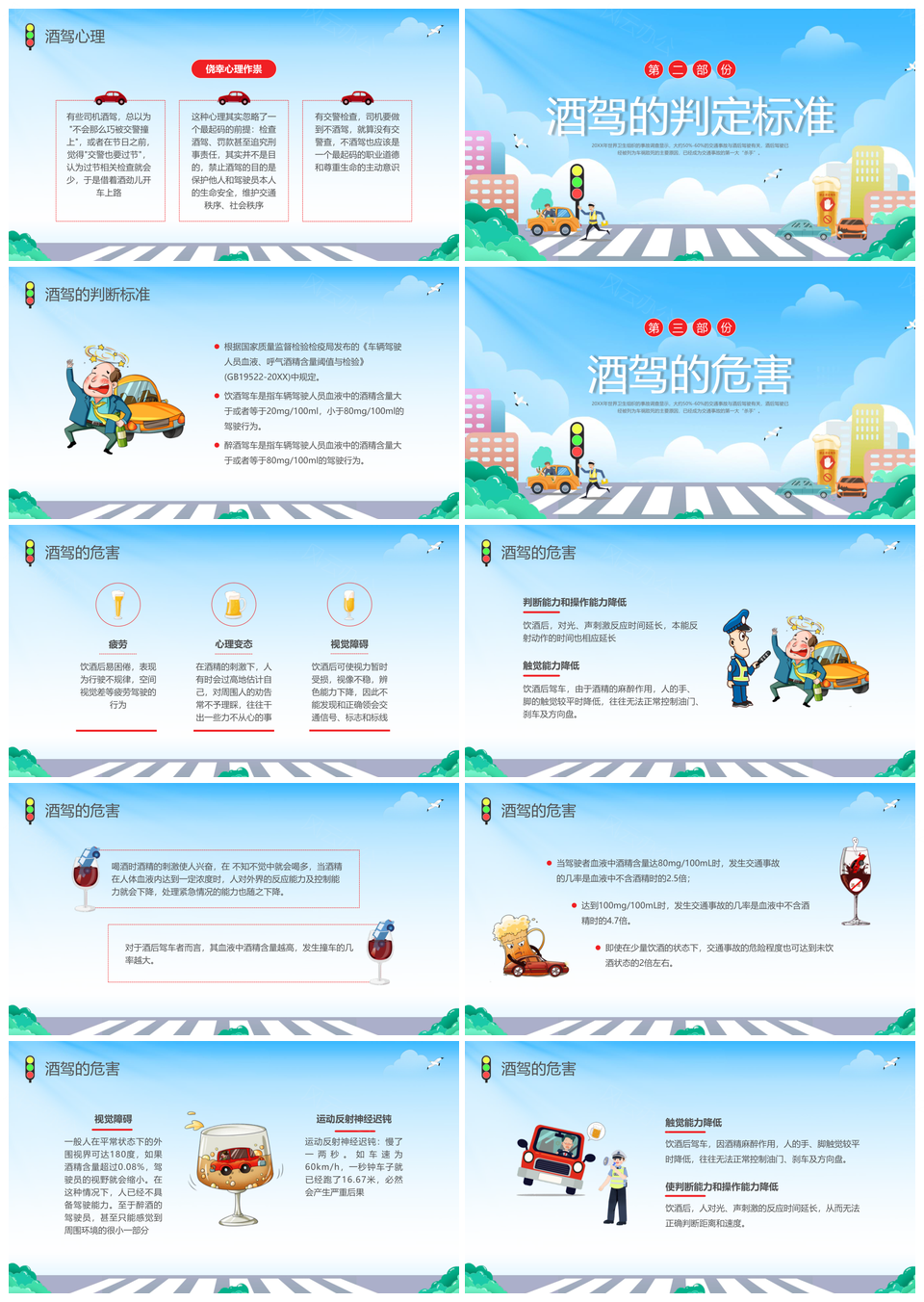 这是一张2025珍爱生命拒绝酒驾交通安全教育插画PPT模板,包含2025、珍爱生命、拒绝酒驾、交通安全教育、插画等主题内容,也可用作珍爱生命拒绝酒驾、拒绝酒驾交通安全、交通安全教育插画、珍爱生命交通安全、拒绝酒驾教育插画、交通安全教育、拒绝酒驾教育、珍爱生命安全、酒驾交通安全、安全教育插画、交通教育插画、珍爱生命、拒绝酒驾、交通安全、教育插画等PPT场景使用。 风云办公提供的2025珍爱生命拒绝酒驾交通安全教育插画PPT模板,下载格式为pptx,一共24页,作品中文字及图均可以修改和编辑,图片更改请在作品中右键图片并更换,文字修改请直接点击文字进行修改。