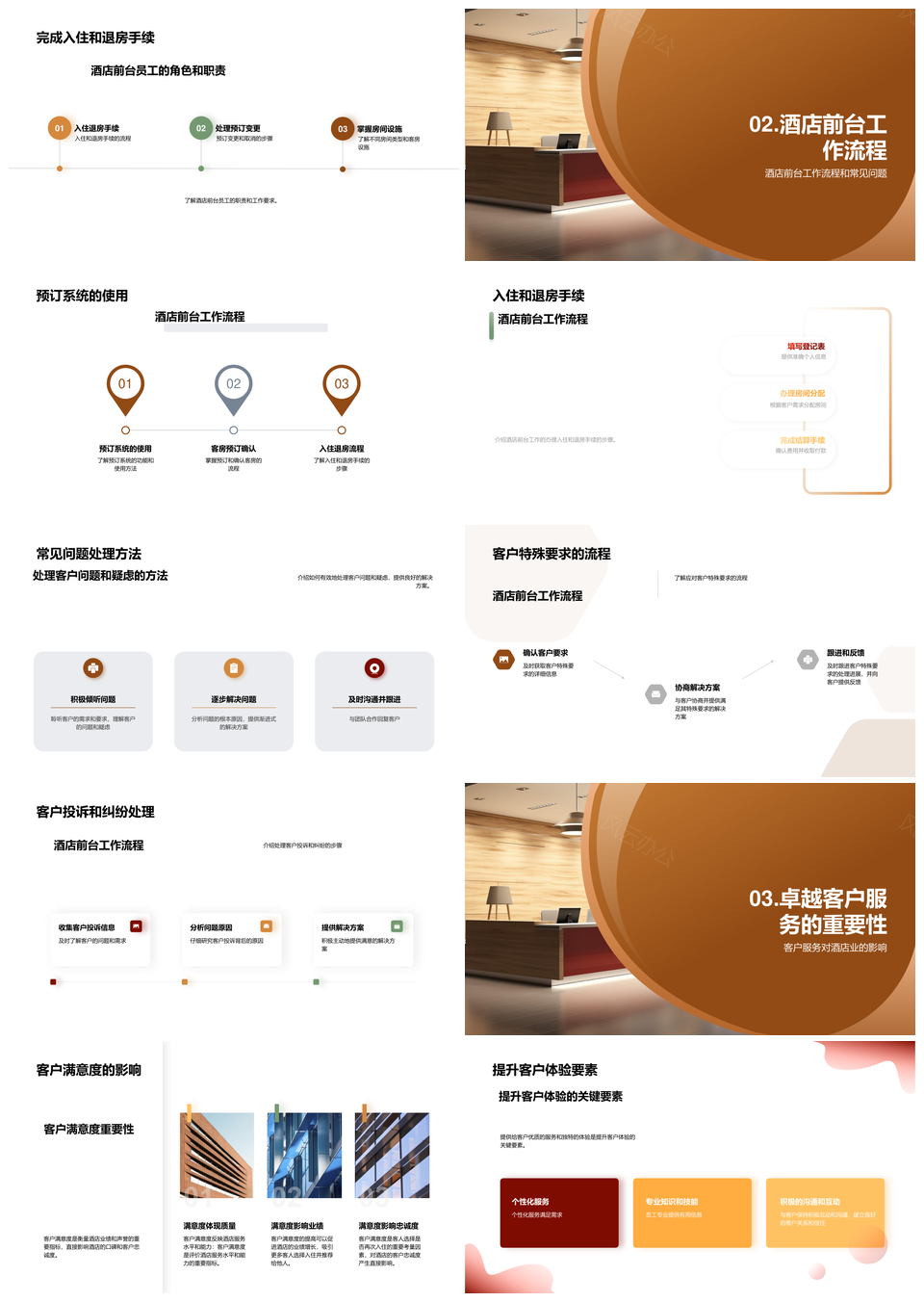 这是一张酒店前台员工接待解答投诉处理培训PPT模板,包含酒店、前台、员工、接待、解答、投诉、处理、培训等主题内容,也可用作酒店前台员工接待解答投诉处理培训、酒店前台员工接待解答投诉、前台员工接待解答投诉处理、员工接待解答投诉处理培训、酒店前台接待解答投诉处理、前台接待解答投诉处理培训、接待解答投诉处理培训、酒店前台员工接待解答、前台员工接待解答投诉、员工接待解答投诉处理、酒店前台接待解答投诉、前台接待解答投诉处理、接待解答投诉处理、酒店前台员工培训、投诉处理培训等PPT场景使用。