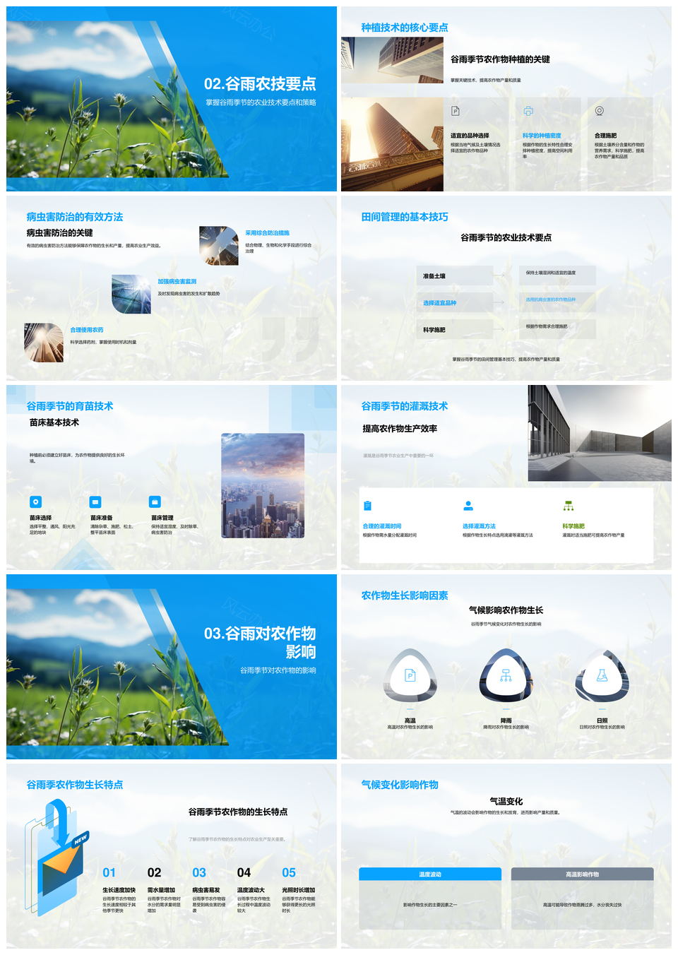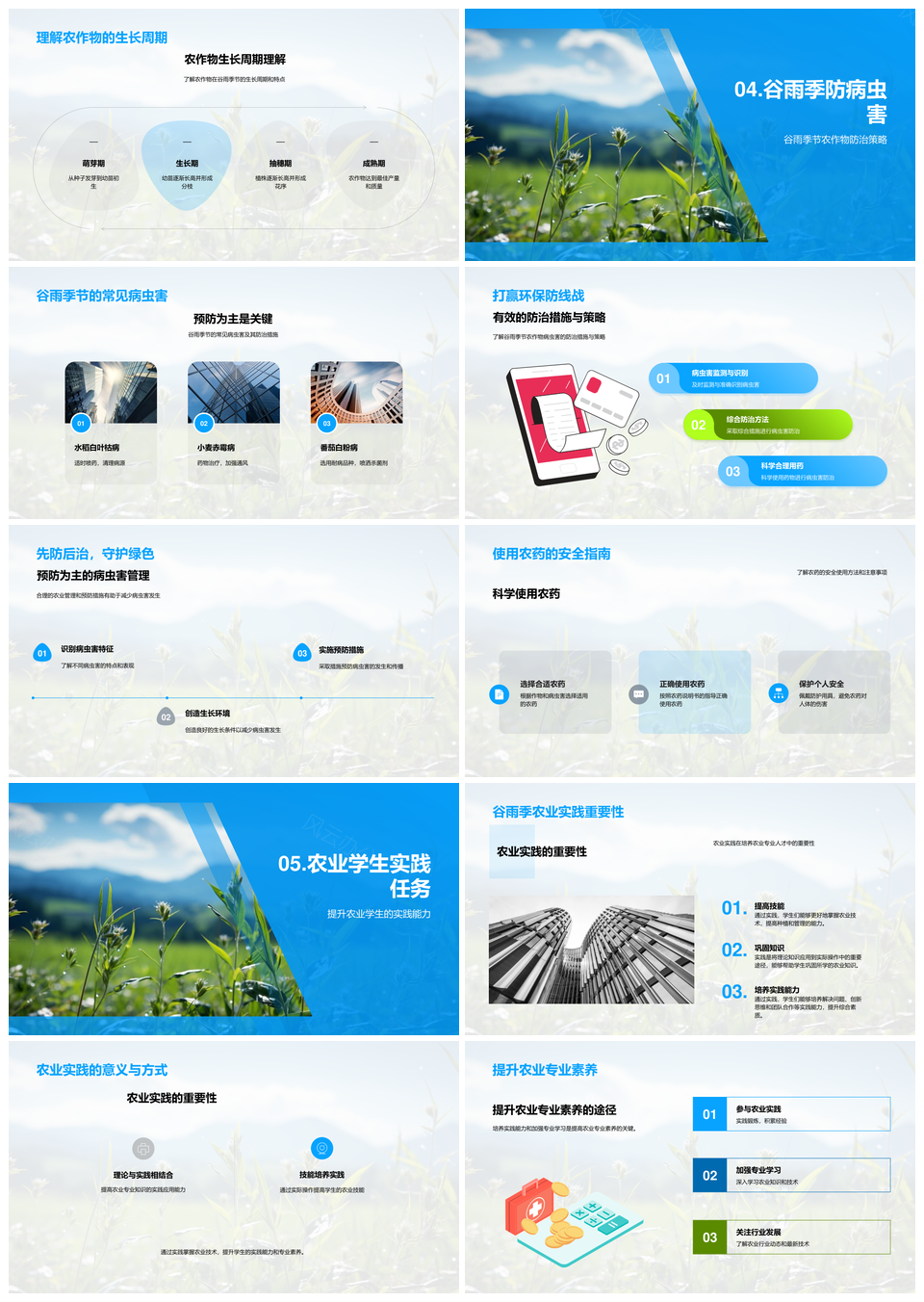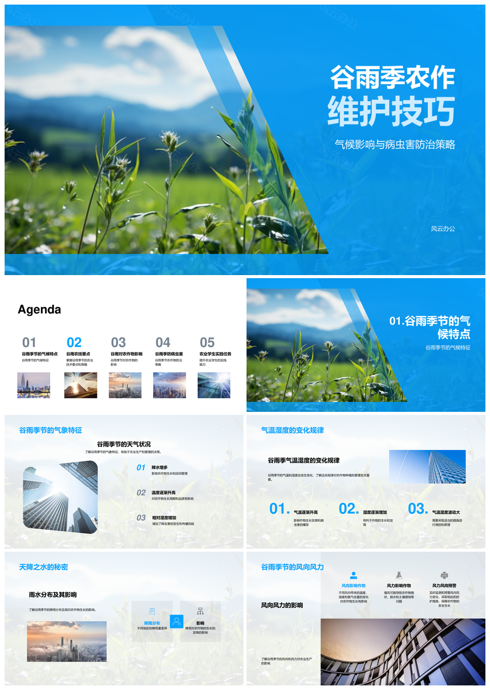 风云办公提供的谷雨季农技专家田间管理防病虫害PPT模板,下载格式为pptx,一共29页,作品中文字及图均可以修改和编辑,图片更改请在作品中右键图片并更换,文字修改请直接点击文字进行修改。