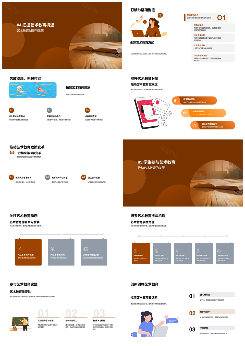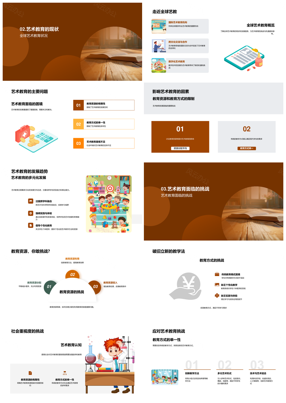 风云办公提供的艺术教育挑战机遇与资源方式政策变革PPT模板,下载格式为pptx,一共28页,作品中文字及图均可以修改和编辑,图片更改请在作品中右键图片并更换,文字修改请直接点击文字进行修改。