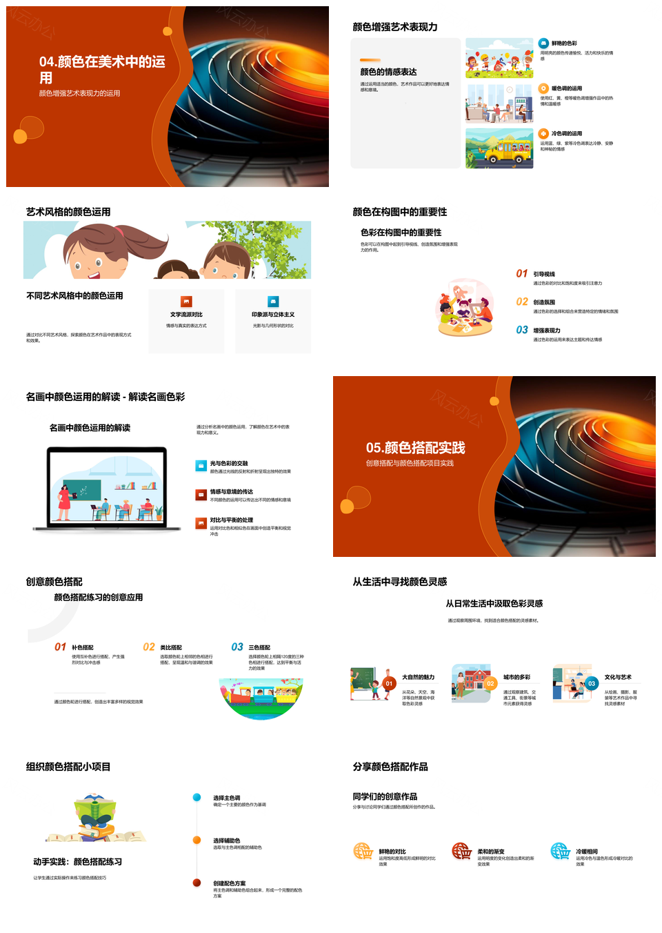 这是一张颜色轮基础搭配与美术色彩理论艺术表现力PPT模板,包含颜色轮、基础搭配、美术色彩理论、艺术表现力等主题内容,也可用作颜色轮基础搭配理论、颜色轮基础美术色彩、基础搭配美术色彩理论、美术色彩理论艺术表现力、颜色轮搭配美术色彩理论、颜色轮基础搭配、基础搭配美术色彩、搭配美术色彩理论、美术色彩艺术表现力、色彩理论艺术表现力、颜色轮美术色彩、美术色彩理论、基础搭配理论、色彩理论艺术、艺术表现力等PPT场景使用。 风云办公提供的颜色轮基础搭配与美术色彩理论艺术表现力PPT模板,下载格式为pptx,一共28页,作品中文字及图均可以修改和编辑,图片更改请在作品中右键图片并更换,文字修改请直接点击文字进行修改。