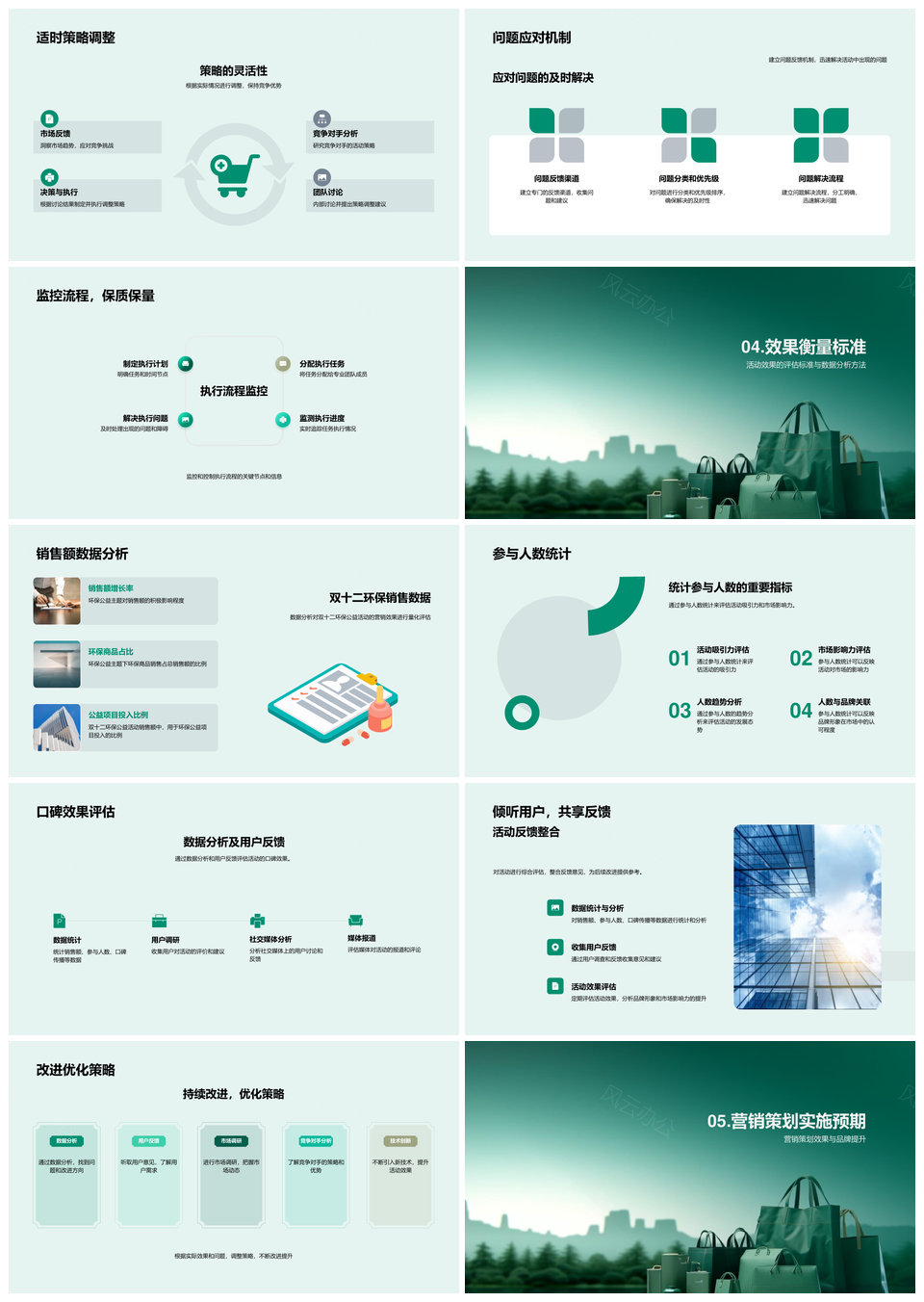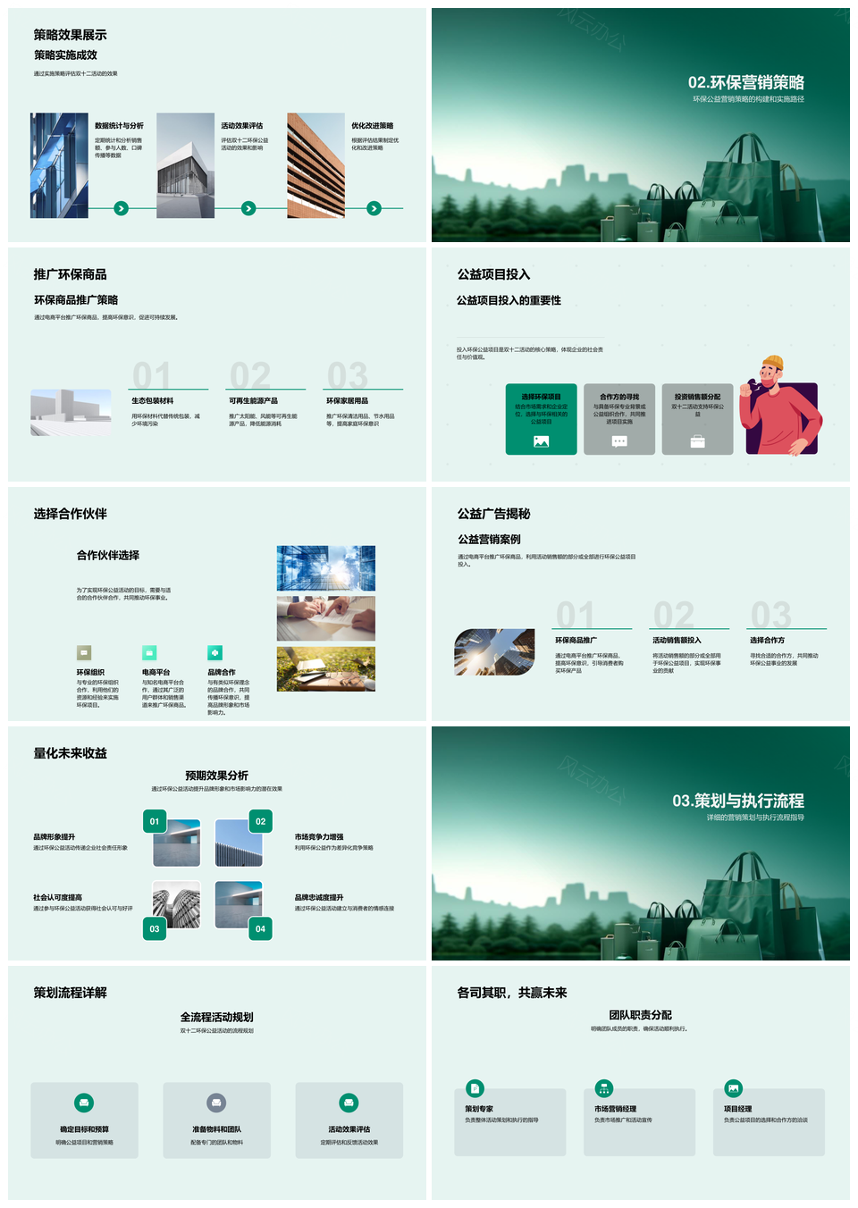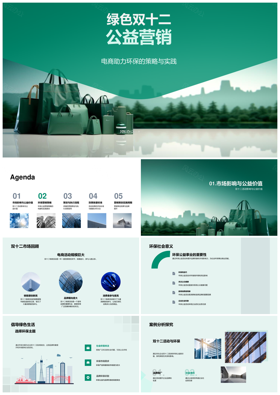 这是一张绿色双十二公益营销电商助力环保商品推广PPT模板,包含绿色、双十二、公益营销、电商、环保商品、推广等主题内容,也可用作绿色双十二公益营销、双十二公益营销电商、公益营销电商助力、营销电商助力环保、电商助力环保商品、助力环保商品推广、绿色双十二公益、双十二公益营销、公益营销电商、营销电商助力、电商助力环保、助力环保商品、环保商品推广、绿色双十二、双十二公益等PPT场景使用。 风云办公提供的绿色双十二公益营销电商助力环保商品推广PPT模板,下载格式为pptx,一共33页,作品中文字及图均可以修改和编辑,图片更改请在作品中右键图片并更换,文字修改请直接点击文字进行修改。