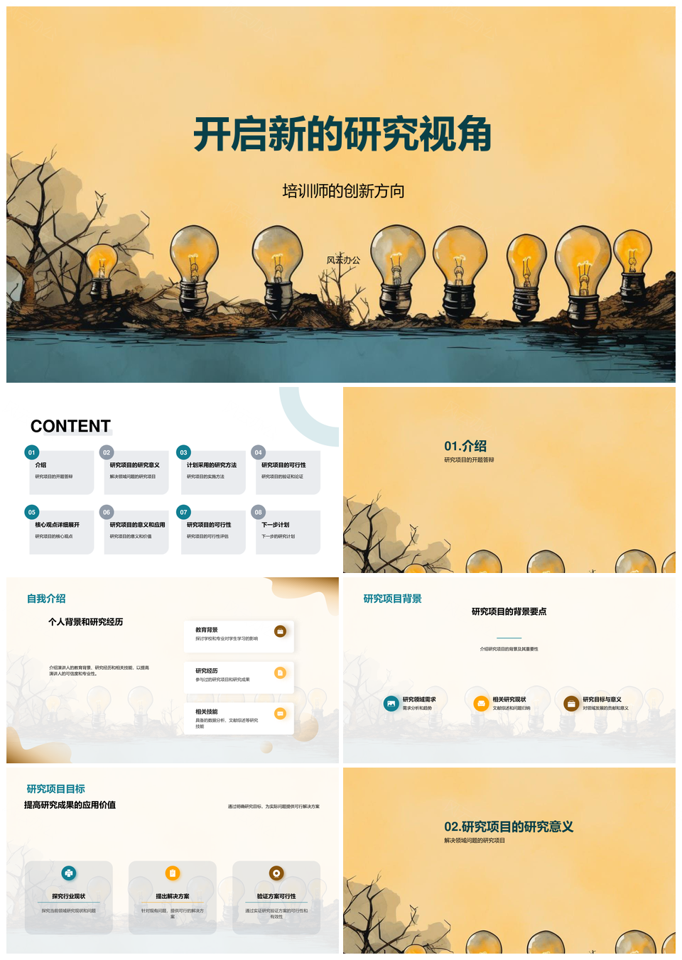 研究生开题灯泡研究项目可行性现状问题实证文献数据分析PPT模板推荐