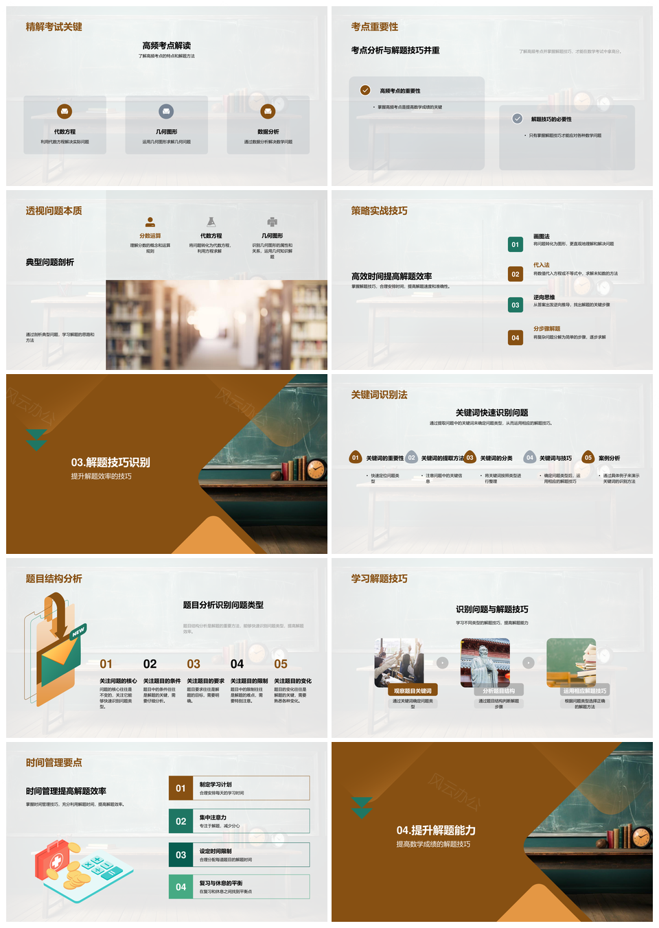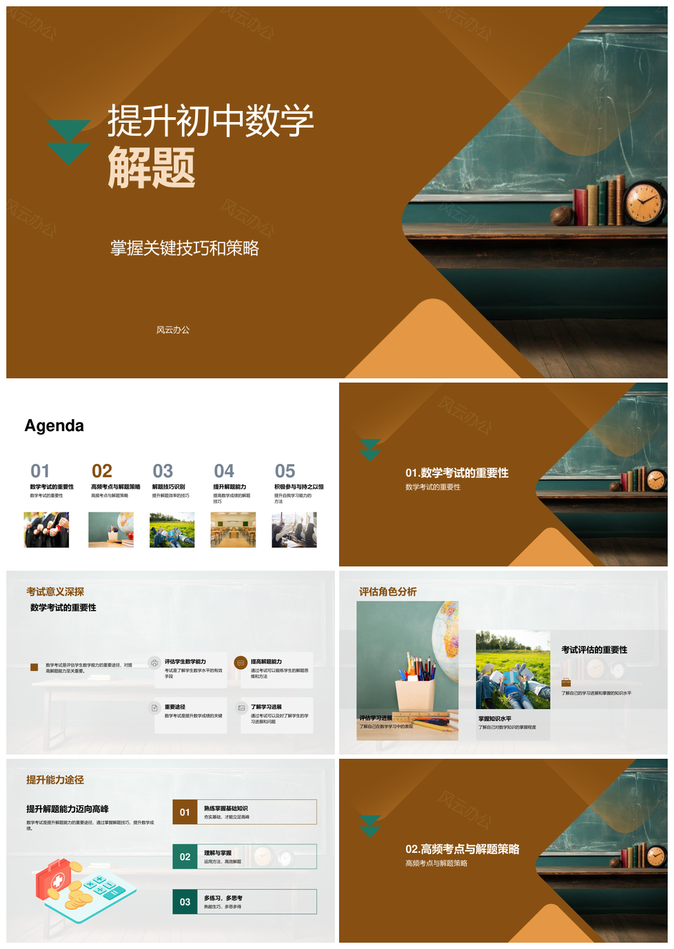 风云办公提供的初中数学解题技巧策略高频考点提升PPT模板,下载格式为pptx,一共25页,作品中文字及图均可以修改和编辑,图片更改请在作品中右键图片并更换,文字修改请直接点击文字进行修改。