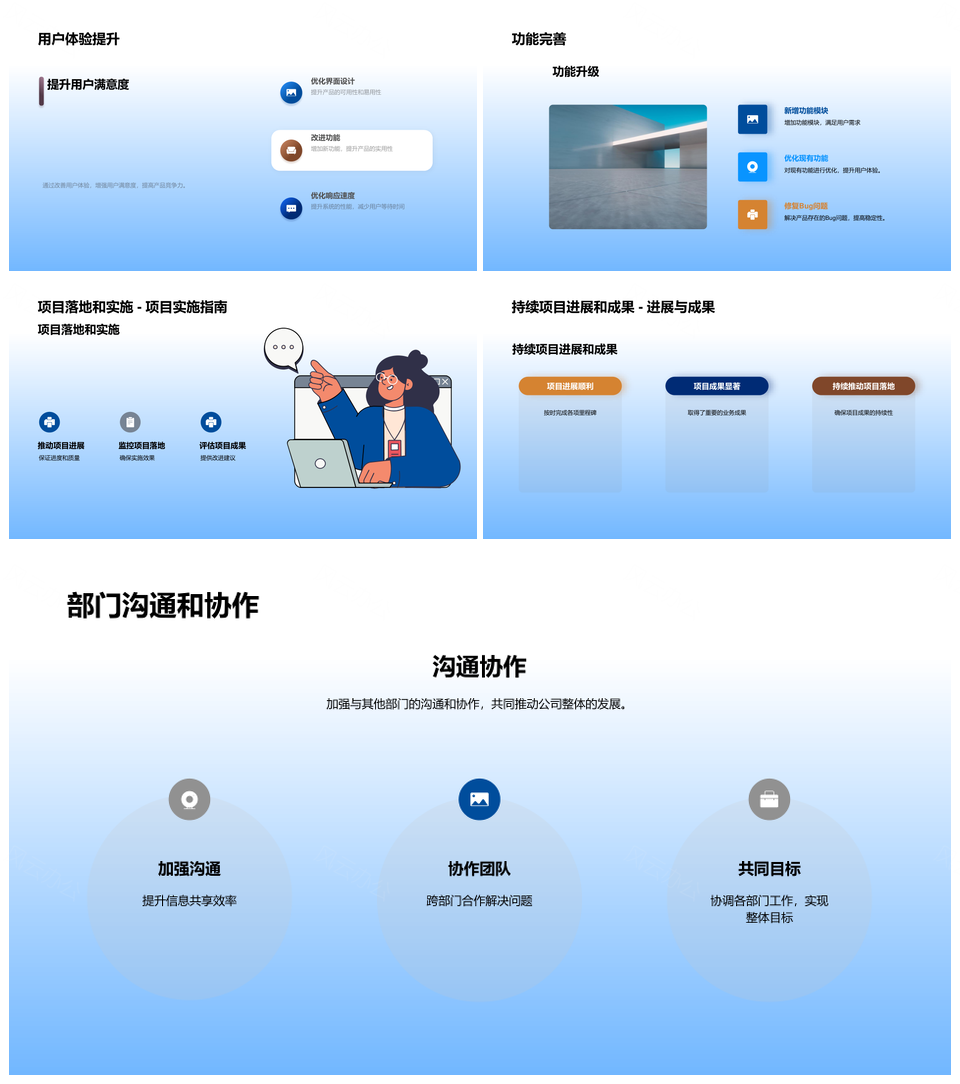 这是一张IT互联网负责人20XX年度项目协作完善用户体验功能PPT模板,包含IT互联网、负责人、20XX年度、项目协作、完善、用户体验、功能等主题内容,也可用作IT互联网负责人20XX年度项目协作完善用户体验、负责人20XX年度项目协作完善功能、项目协作完善用户体验功能、IT互联网负责人项目协作完善、负责人项目协作完善用户体验、负责人20XX年度完善用户体验、20XX年度项目协作完善功能、IT互联网项目协作用户体验、年度项目协作用户体验功能、完善用户体验功能、项目协作完善用户体验、负责人年度项目协作、用户体验功能、负责人项目协作、20XX年度项目协作等PPT场景使用。 风云办公提供的IT互联网负责人20XX年度项目协作完善用户体验功能PPT模板,下载格式为pptx,一共23页,作品中文字及图均可以修改和编辑,图片更改请在作品中右键图片并更换,文字修改请直接点击文字进行修改。
