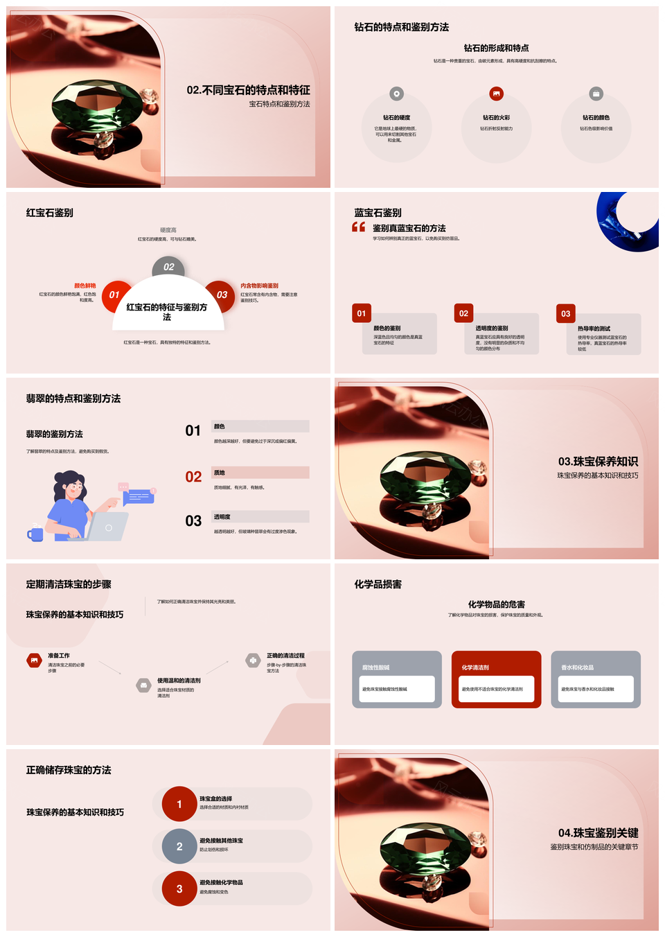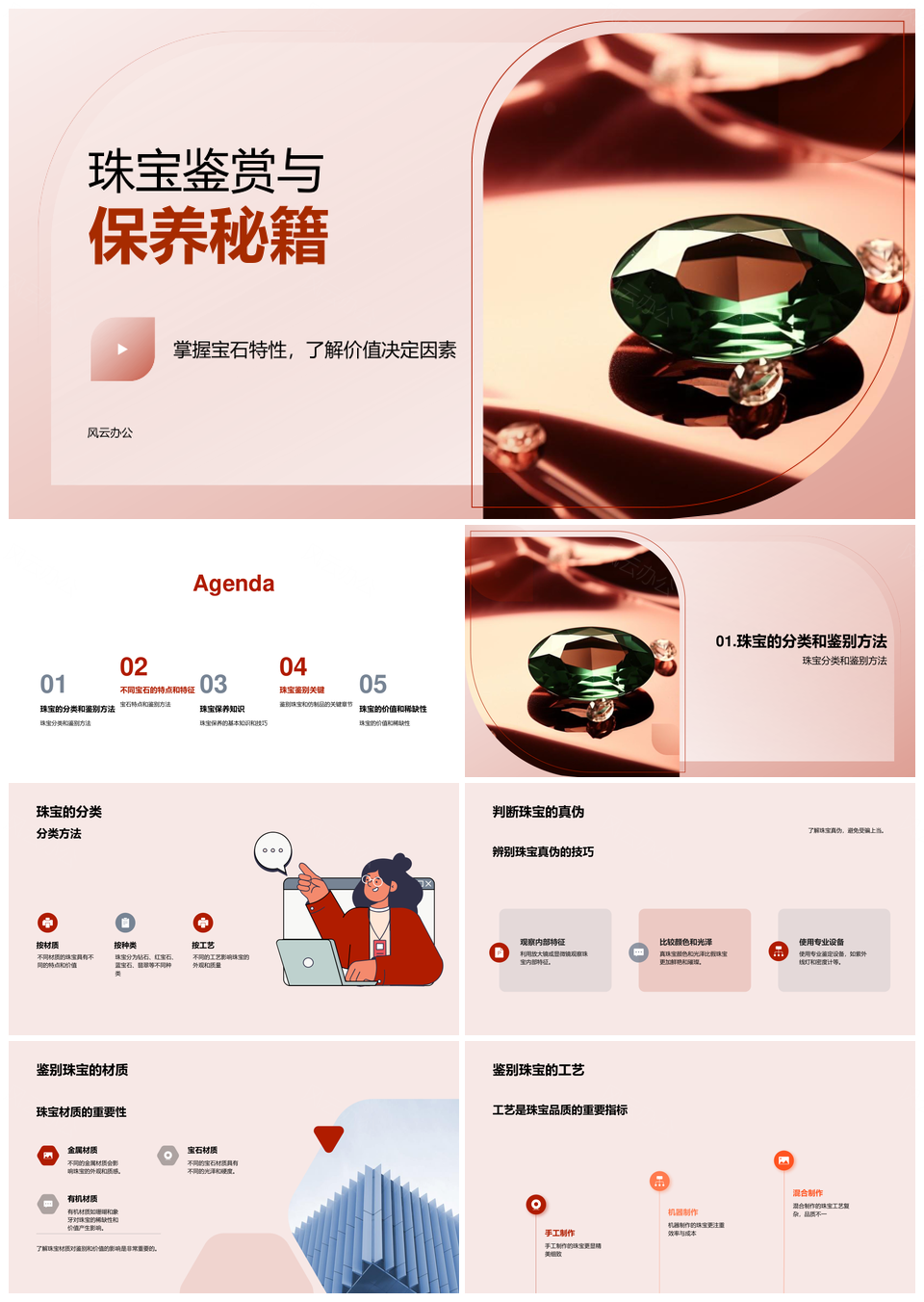 风云办公提供的珠宝专家收藏家共鉴保养艺术设计工艺PPT模板,下载格式为pptx,一共25页,作品中文字及图均可以修改和编辑,图片更改请在作品中右键图片并更换,文字修改请直接点击文字进行修改。
