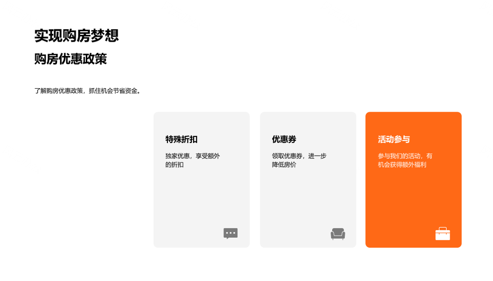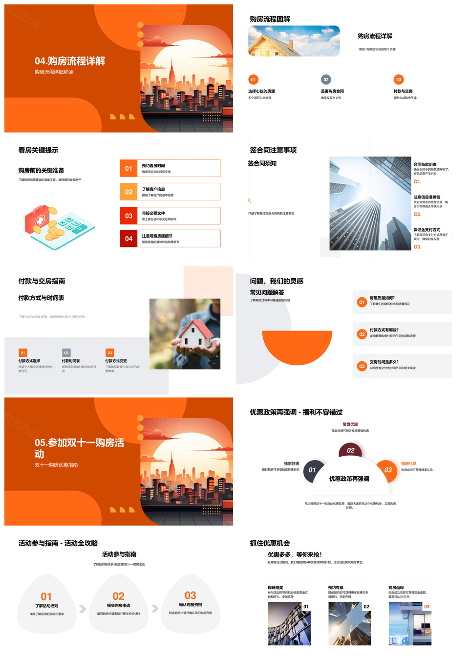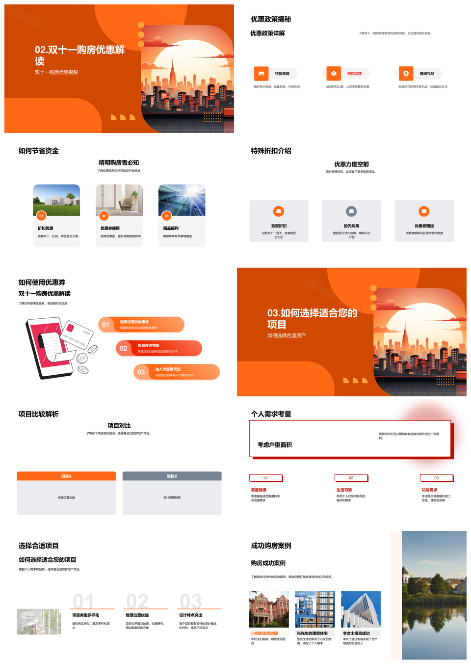 这是一张双十一购房攻略大全及项目户型地理优惠流程PPT模板,包含双十一、购房、攻略、大全、项目、户型、地理、优惠、流程等主题内容,也可用作双十一购房攻略大全、项目户型地理优惠、双十一购房攻略、购房攻略大全、双十一攻略大全、项目户型地理、户型地理优惠、地理优惠流程、双十一购房优惠、购房优惠流程、双十一购房、购房攻略、攻略大全、项目户型、优惠流程等PPT场景使用。 风云办公提供的双十一购房攻略大全及项目户型地理优惠流程PPT模板,下载格式为pptx,一共29页,作品中文字及图均可以修改和编辑,图片更改请在作品中右键图片并更换,文字修改请直接点击文字进行修改。