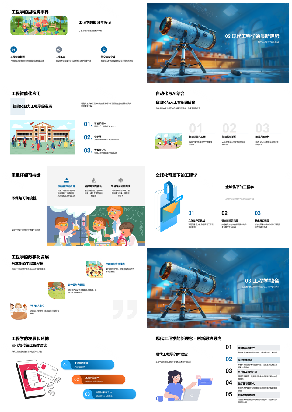 工程学演变智能自动化可持续环保全球化数字化PPT模板推荐