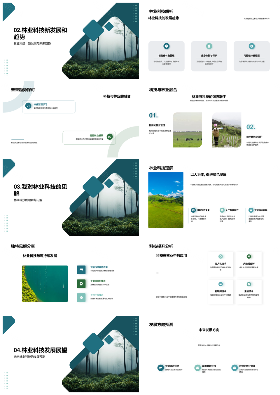 风云办公提供的林业科技融合绿色发展新趋势PPT模板,下载格式为pptx,一共24页,作品中文字及图均可以修改和编辑,图片更改请在作品中右键图片并更换,文字修改请直接点击文字进行修改。