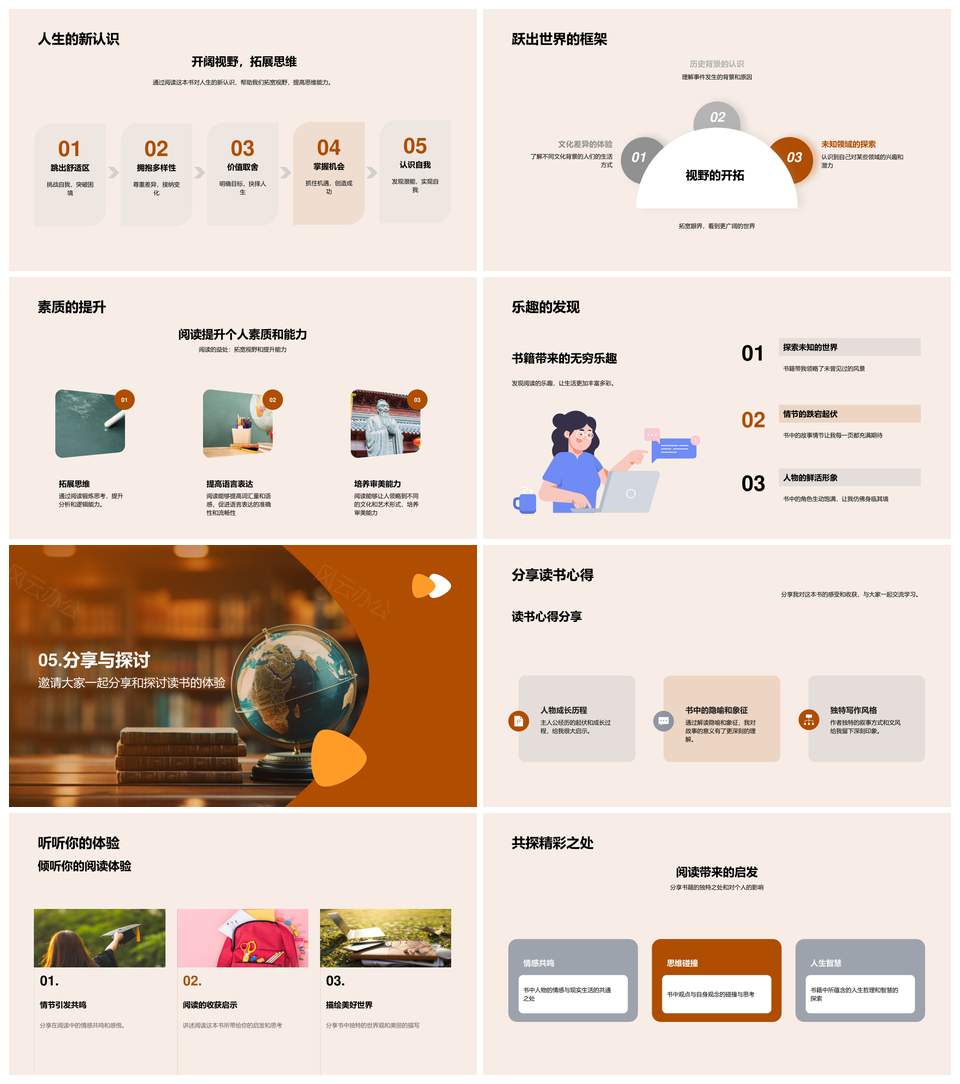 这是一张阅读之旅知识共享收获成长PPT模板,包含阅读之旅、知识共享、收获成长等主题内容,也可用作阅读之旅知识共享、知识共享收获成长、阅读之旅知识、知识共享收获、共享收获成长、阅读知识共享、知识共享成长、之旅知识共享、阅读之旅共享、阅读知识收获、阅读之旅、知识共享、收获成长、共享收获、成长之旅等PPT场景使用。 风云办公提供的阅读之旅知识共享收获成长PPT模板,下载格式为pptx,一共26页,作品中文字及图均可以修改和编辑,图片更改请在作品中右键图片并更换,文字修改请直接点击文字进行修改。