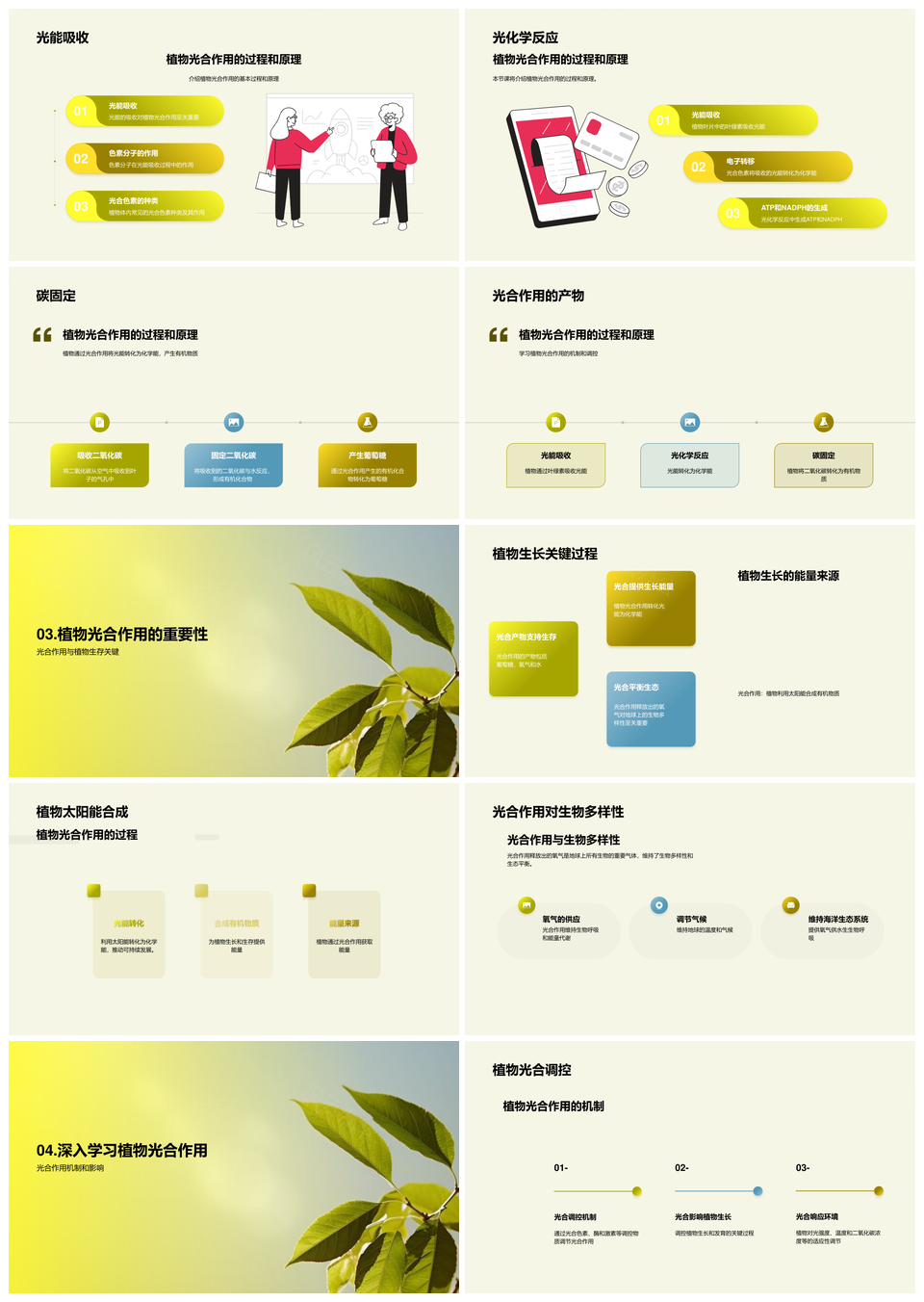 这是一张植物光合作用光能吸收碳固定反应产物PPT模板,包含光合作用、光能、吸收、碳固定、反应产物等主题内容,也可用作植物光合作用光能吸收、光合作用光能吸收碳固定、光能吸收碳固定反应、吸收碳固定反应产物、植物光合作用光能、光合作用光能吸收、光能吸收碳固定、吸收碳固定反应、碳固定反应产物、植物光合作用、光合作用光能、光能吸收、吸收碳固定、碳固定反应、反应产物等PPT场景使用。